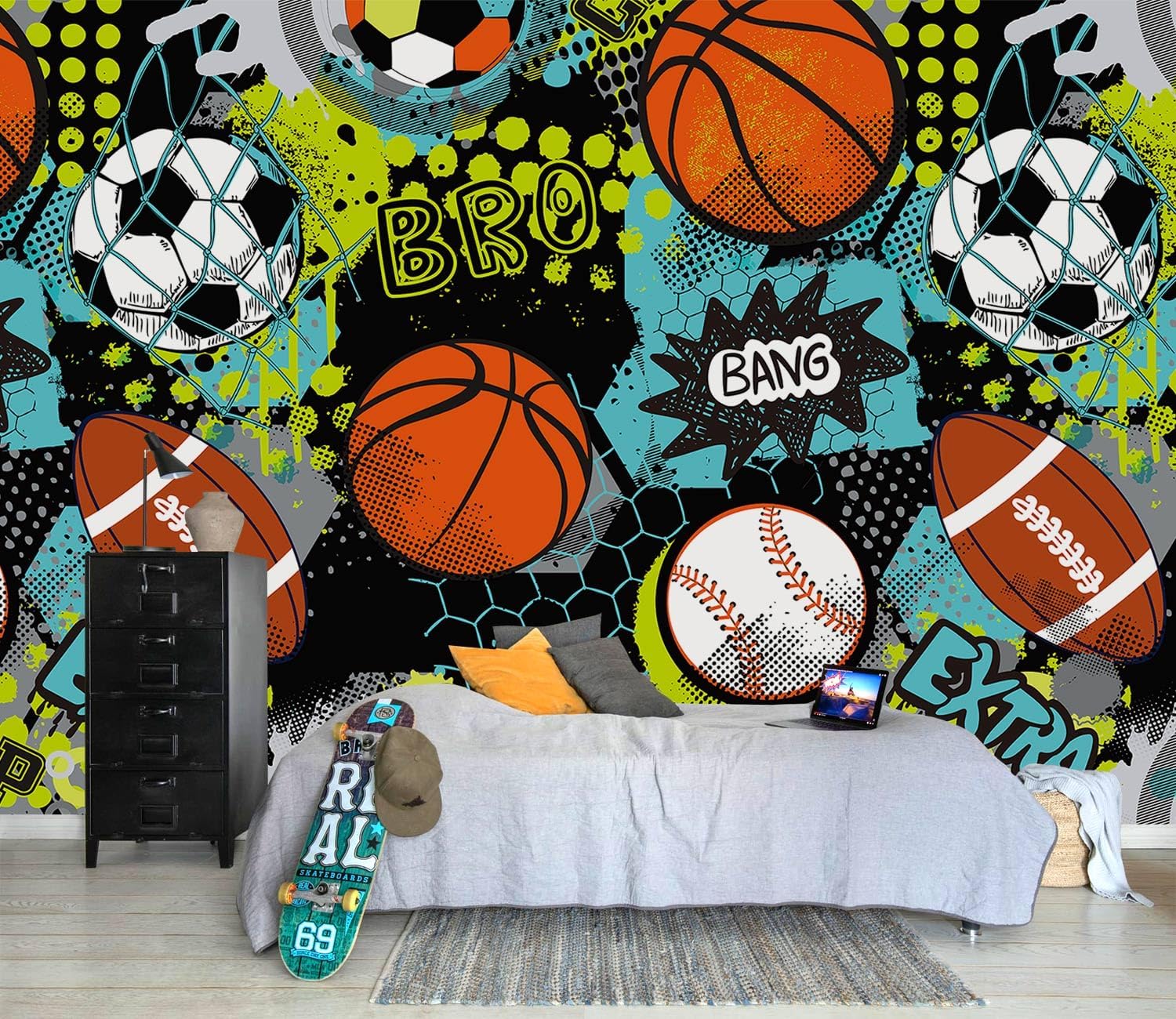 AFZEVEB-Colorful Graffiti Wallpaper Hand-Painted Ball Wall murals for Kids Room 136"x96"(Not Peel and Stick)