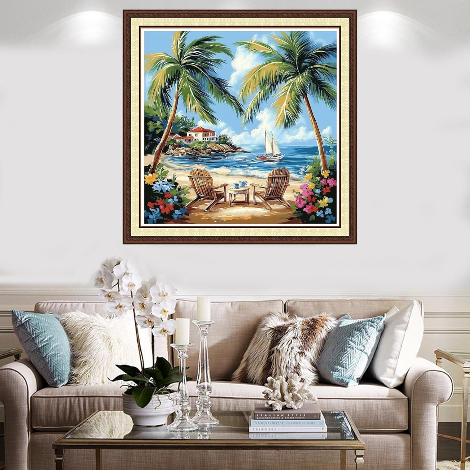 Findvoor Counted Cross Stitch Kits for Adults Full Range of Cross Stitching Embroidery Unprinted Pattern for Beginners, 11CT Needlepoint Kit Patterns Embroidery Kits-Drinking Tea Tree 18x18 inch