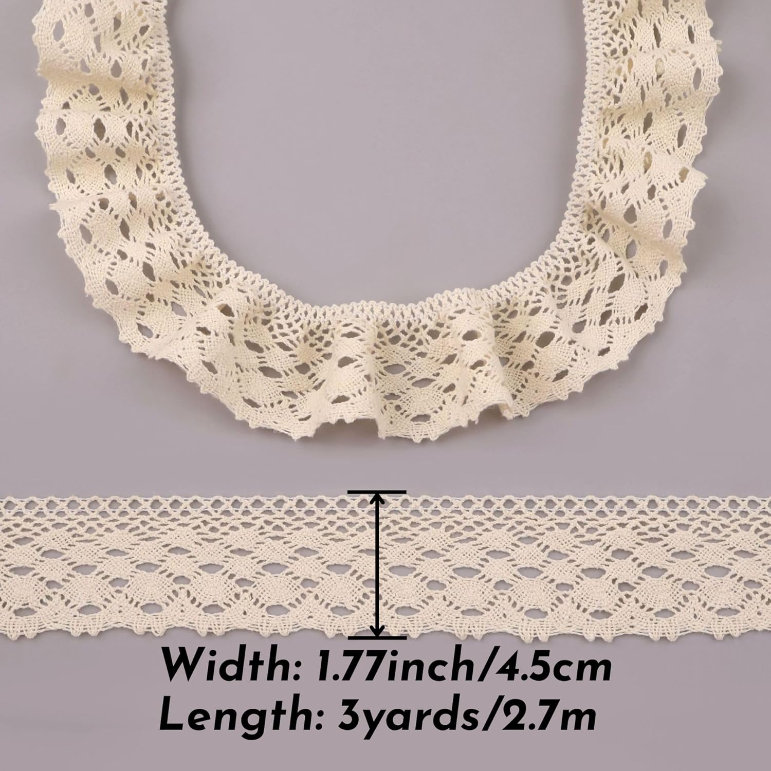 - [Elegant Design]: Delicate ruffle lace trim in versatile beige, adding romantic vintage charm to garments and crafts.