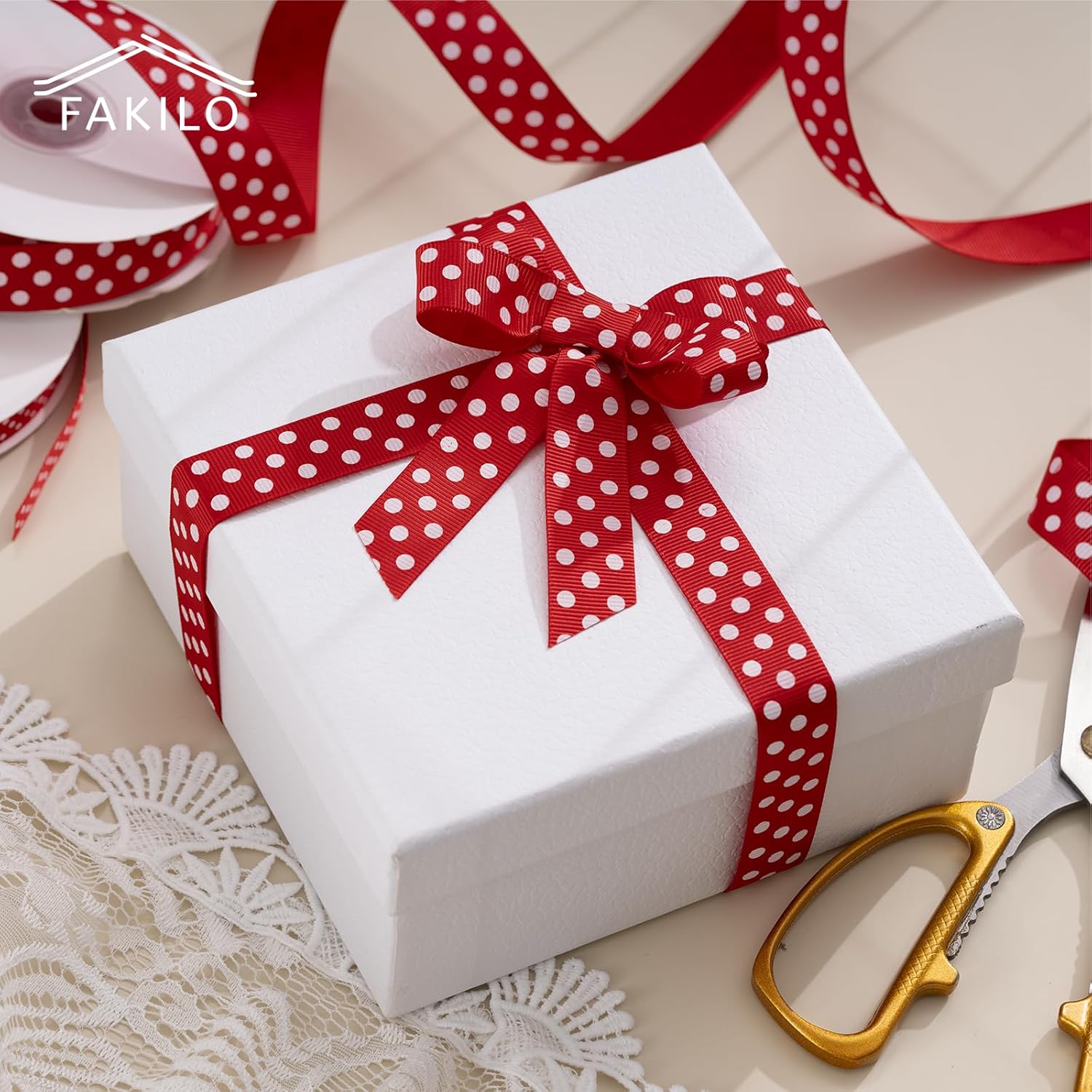 Polka Dot Grosgrain Ribbon 5/8 Inch, 25 Yards Spool Red and White Dot Craft Ribbon for Christmas Gift Wrapping DIY Crafts Hair Bows Sewing Wedding Party Decor and Home Decoration
