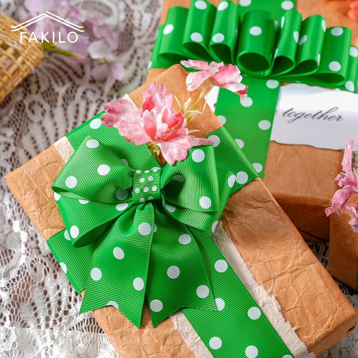 Polka Dot Grosgrain Ribbon 1.5 Inch, 25 Yards Spool Green and White Polka Dot Ribbon for Christmas Gift Wrapping DIY Crafts Hair Bows Wedding Party Decor Sewing and Home Decoration