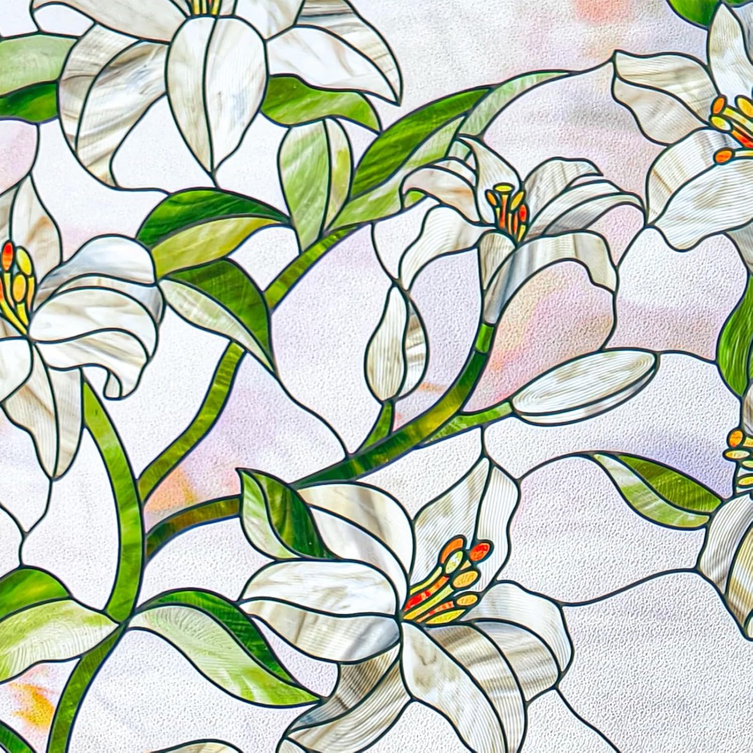 3D Stained Glass Window Film, Decorative Window Privacy Film for Bathroom,Front Door,Home, Sun Blocking Heat Control,Static Cling, White Lily 23.6inch x 35.4inch