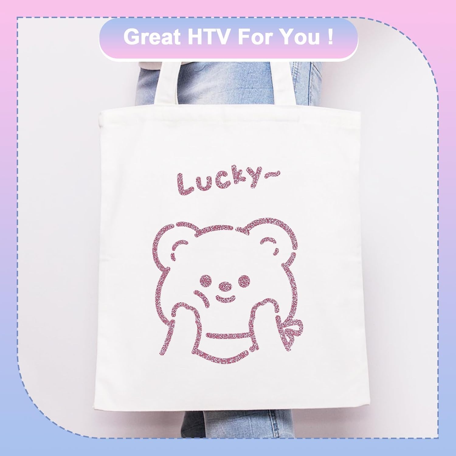 - 【Multiple uses】 Glitter HTV Not just for shirts, this vinyl can be used on a variety of fabrics and items such as tote bags, hats, and more. Let your creativity run wild