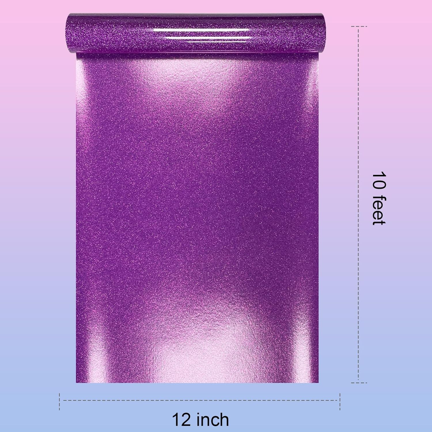 Glitter HTV Heat Transfer Vinyl Rolls- 12" x 10ft. Glitter Iron on Vinyl for DIY T-Shirts, Glitter for All Cutters, Heat Transfer Vinyl (Purple)