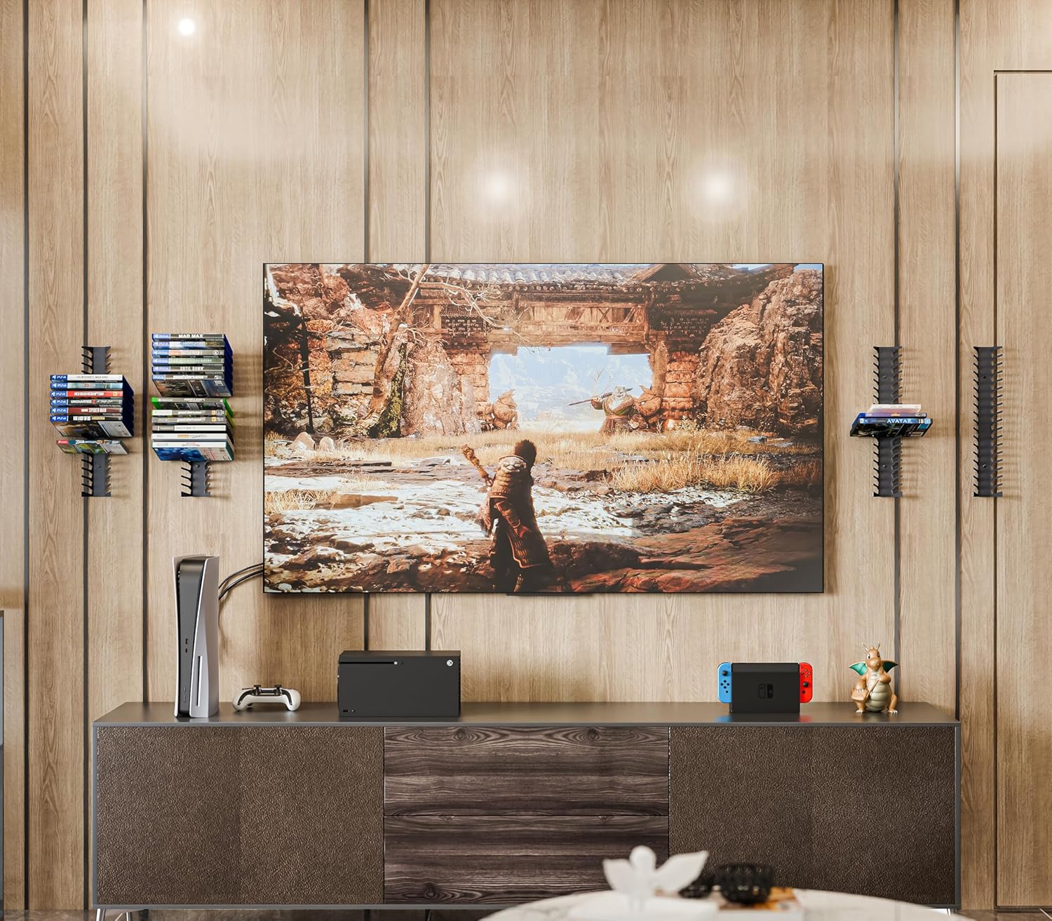 - Decluttered & Easy Access: The wall-mounted media storage shelves allow gamers and collectors to efficiently organize their entertainment space, making it easy to locate and retrieve their favorite games without rummaging through messy piles.