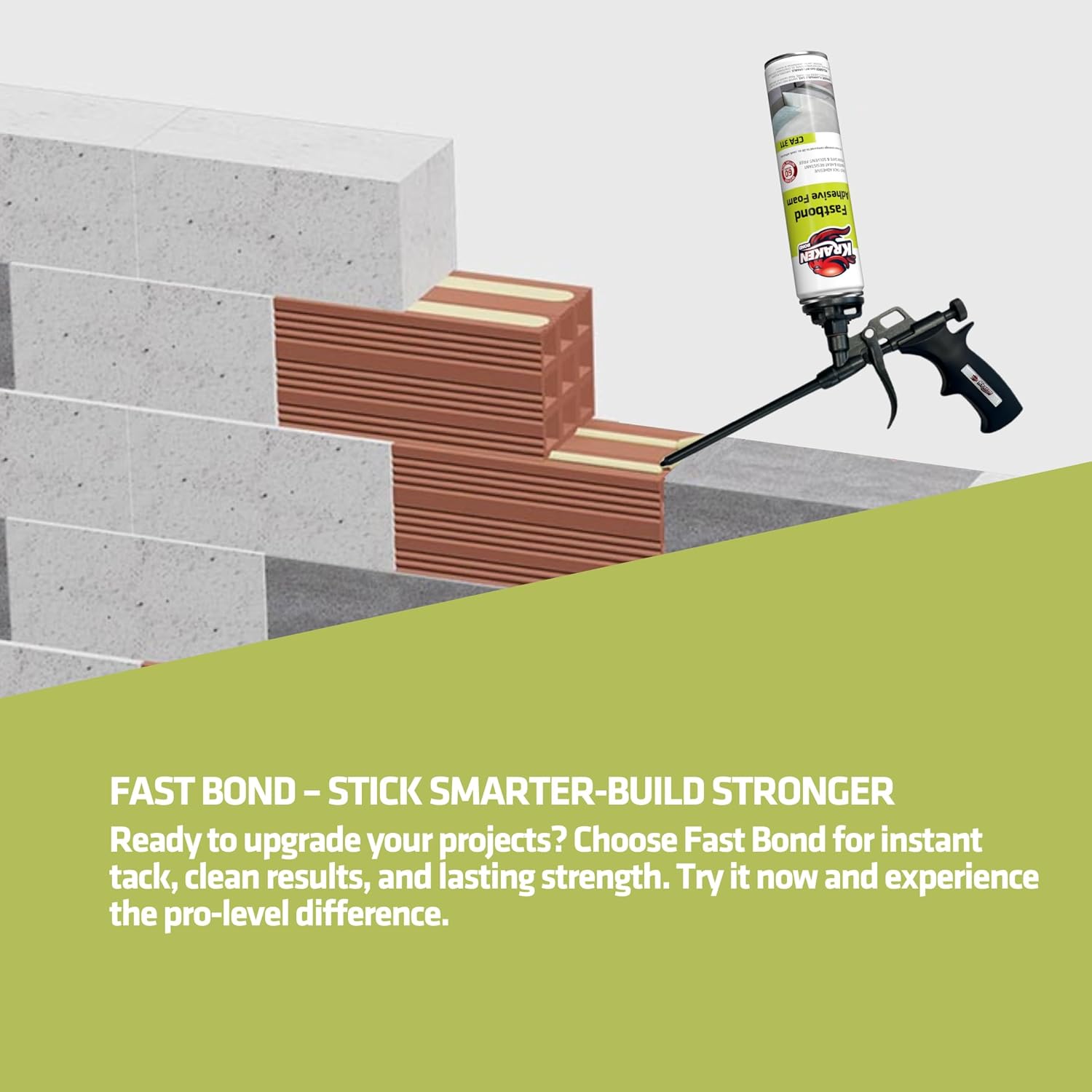 - ULTRA-FAST AND STRONG ADHESION PERFORMANCE – Kraken Fastbond Spray Foam Adhesive provides an initial grip in just 60 seconds and fully bonds materials within 5 minutes. Perfect for foam board insulation (XPS, EPS, etc.), construction adhesive applications, and thermal & sound insulation projects. Speeds up installation, saving time and labor costs.