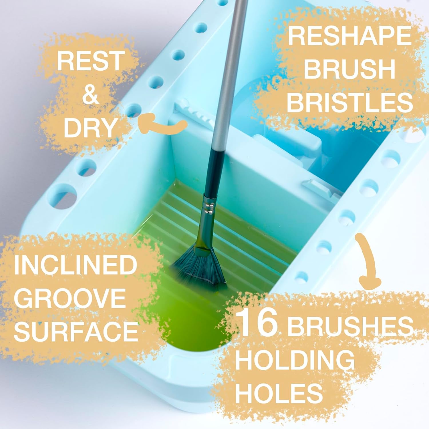 SEVENY Paint Brush Cleaner, Holder and Organizers with Palette,Trays & Rinser for Acrylic, Watercolor, and Water-Based Paints(Blue)