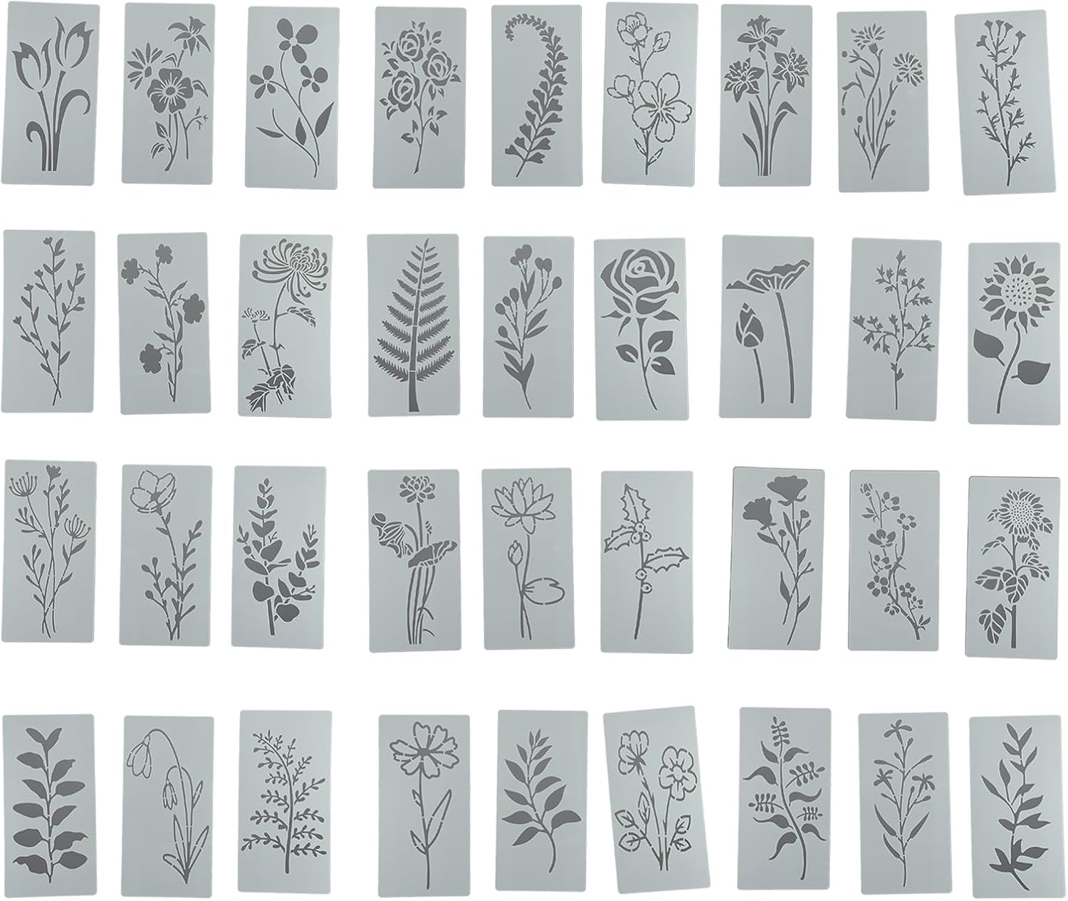 36 Pieces Flower Stencils for Painting on Walls,Reusable Floral Stencils,DIY Craft Drawing Templates Set for Wall Paper Canvas Home Decor