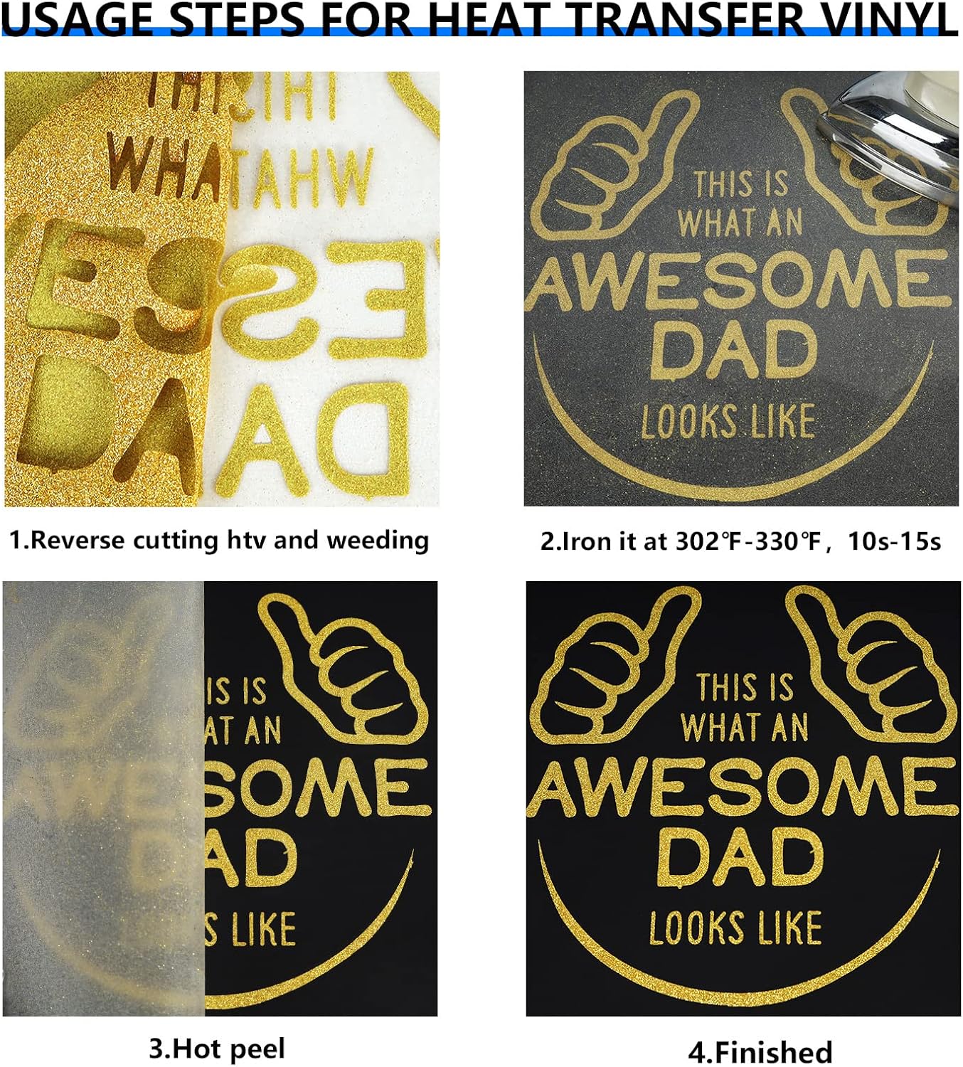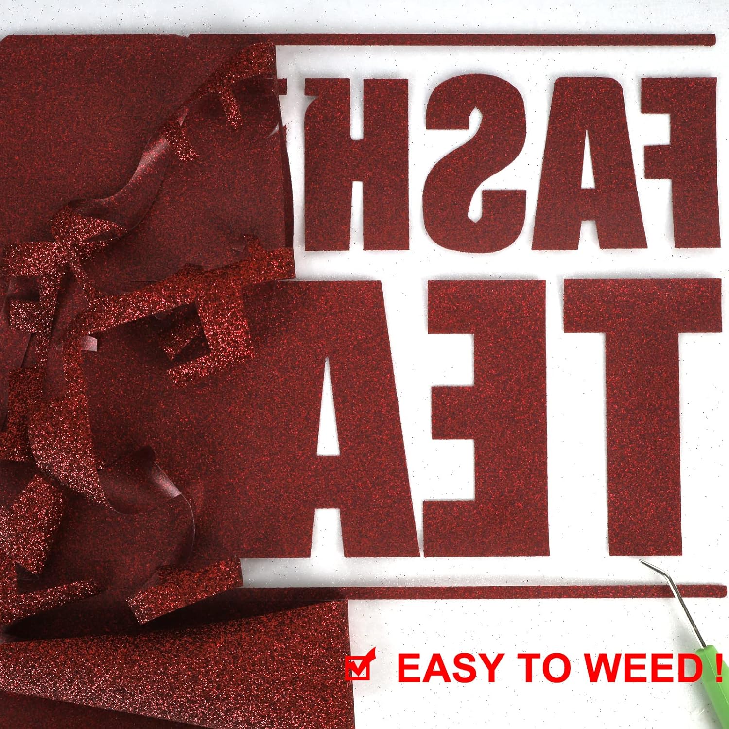 - EASY TO CUT & WEED & TRANSFER: Our glitter htv vinyl rolls is sensitive to temperature and pressure, which can be quickly and easily to weed and peel. It is compatible with all cutter machines, most heat presses and household irons on the market, and perfect for 12x12" and 12x24" cutting mats. You can easily apply adhesive backing htv to fabric using a hot iron or hot press. Please note that it is warm peel