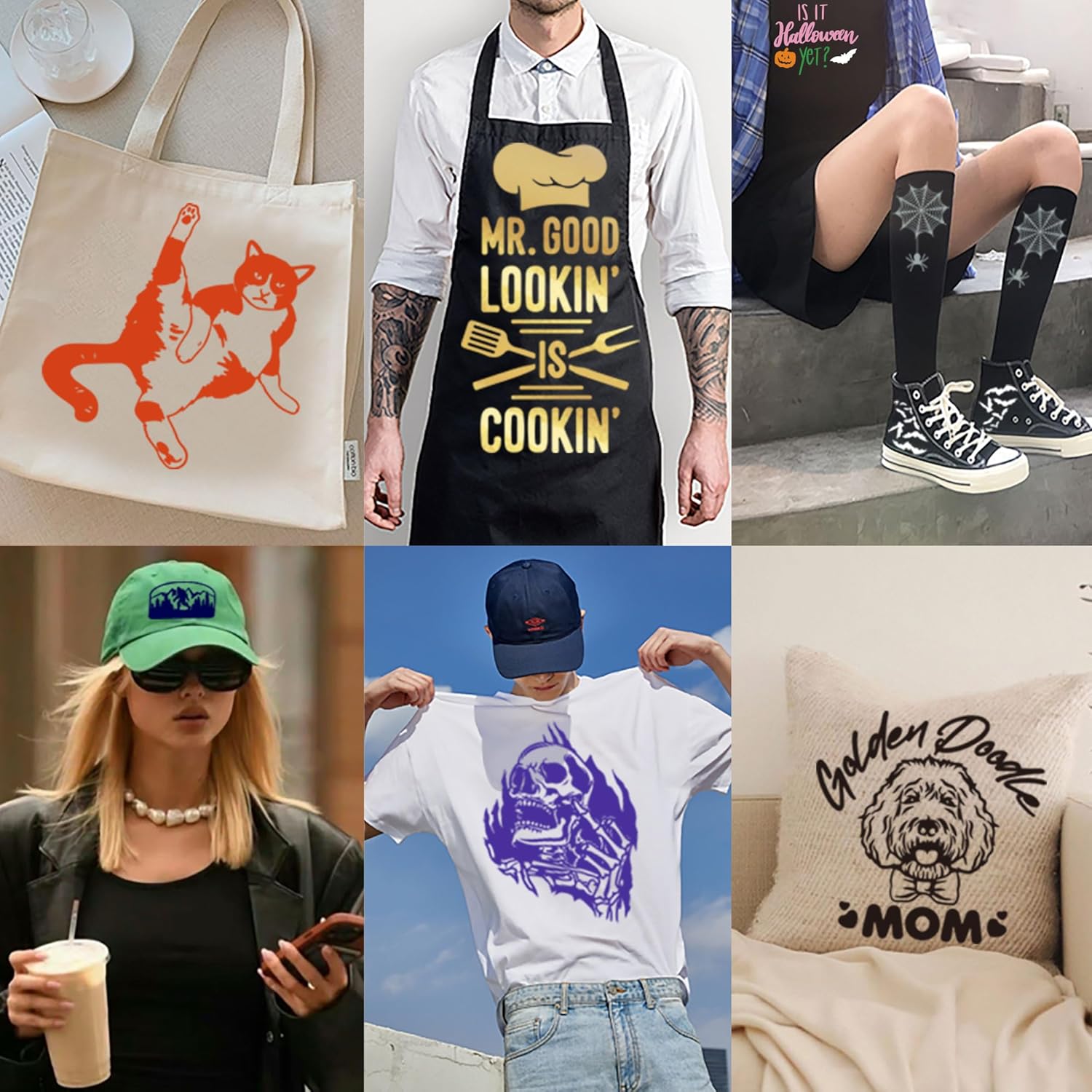- GREAT STICKINESS & DURABLE: Each Roll offers strong adhesion to fabric, fade resistance. It adheres to the fabric seamlessly, supports hand washing and machine washing, and can withstand repeated washing. Please wait 24 hours before its first wash, and turn the fabric upside down while washing to ensure that your design retains its color and does not fade, flake or crack over time