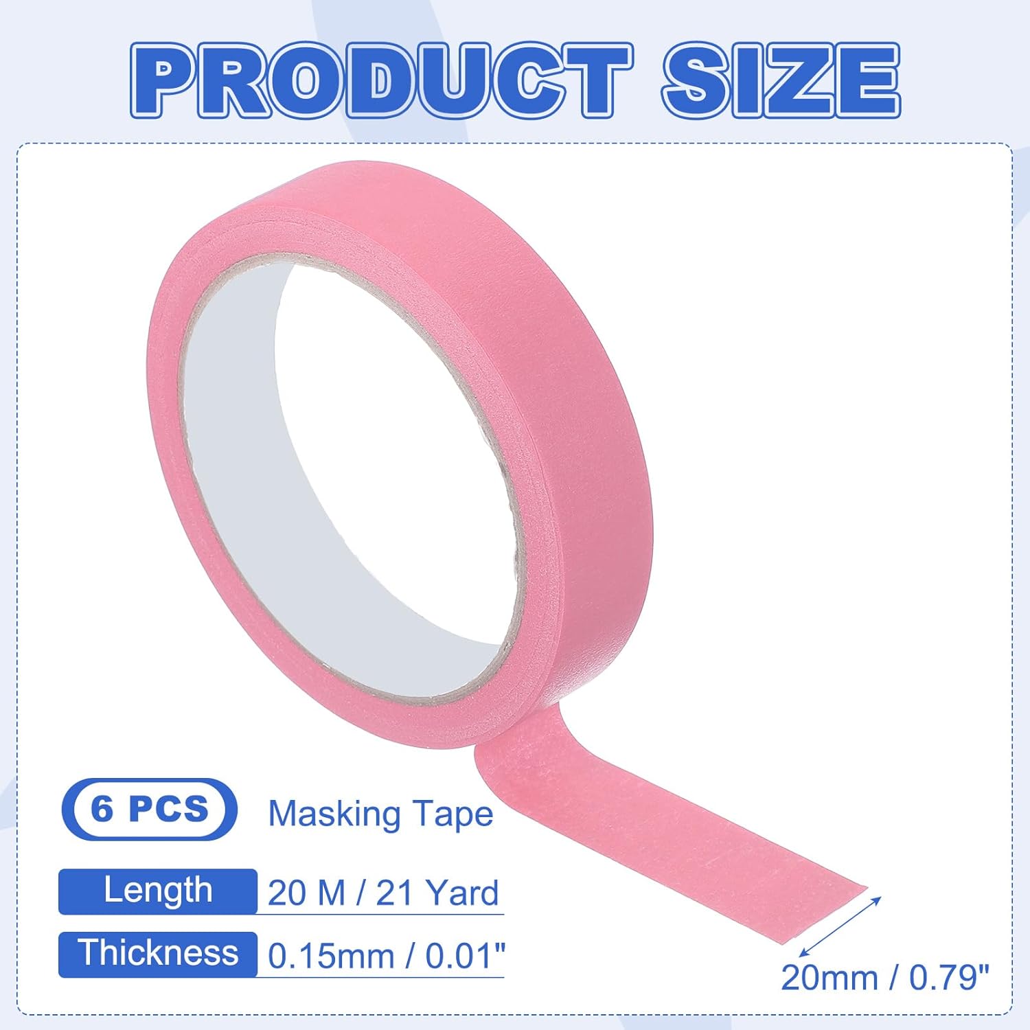 - The masking tape, provides here,is in size of: Thickness: 0.15mm(0.01inch); Size: 20mm x 20m(0.79inch x 21Yard); Color: Pink; Material: Crepe Paper In the package of: 6 Pack x Masking Tape
