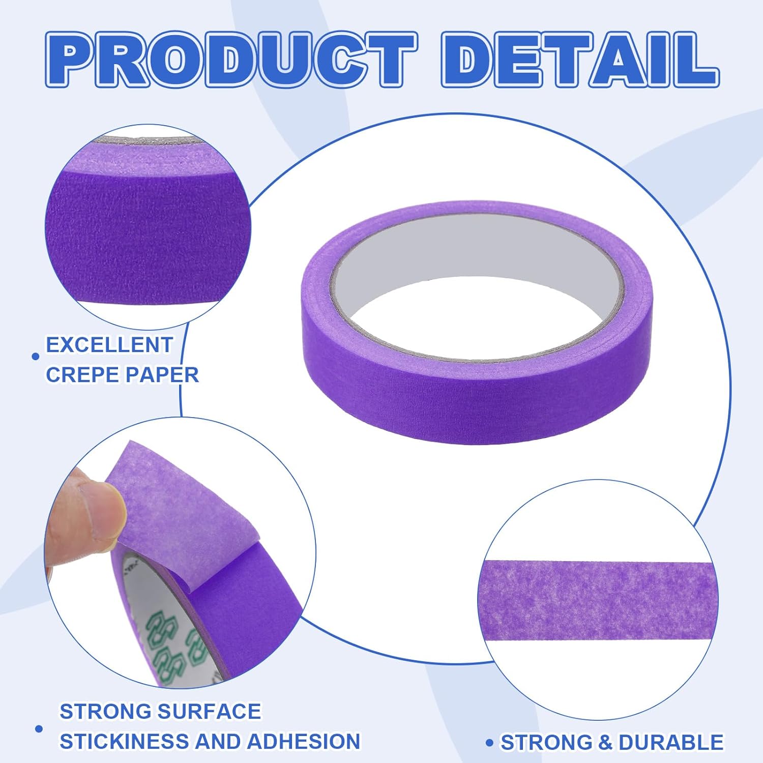 - The masking tape, provides here,is in size of: Thickness: 0.15mm(0.01inch); Size: 20mm x 20m(0.79inch x 21Yard); Color: Purple; Material: Crepe Paper In the package of: 6 Pack x Masking Tape