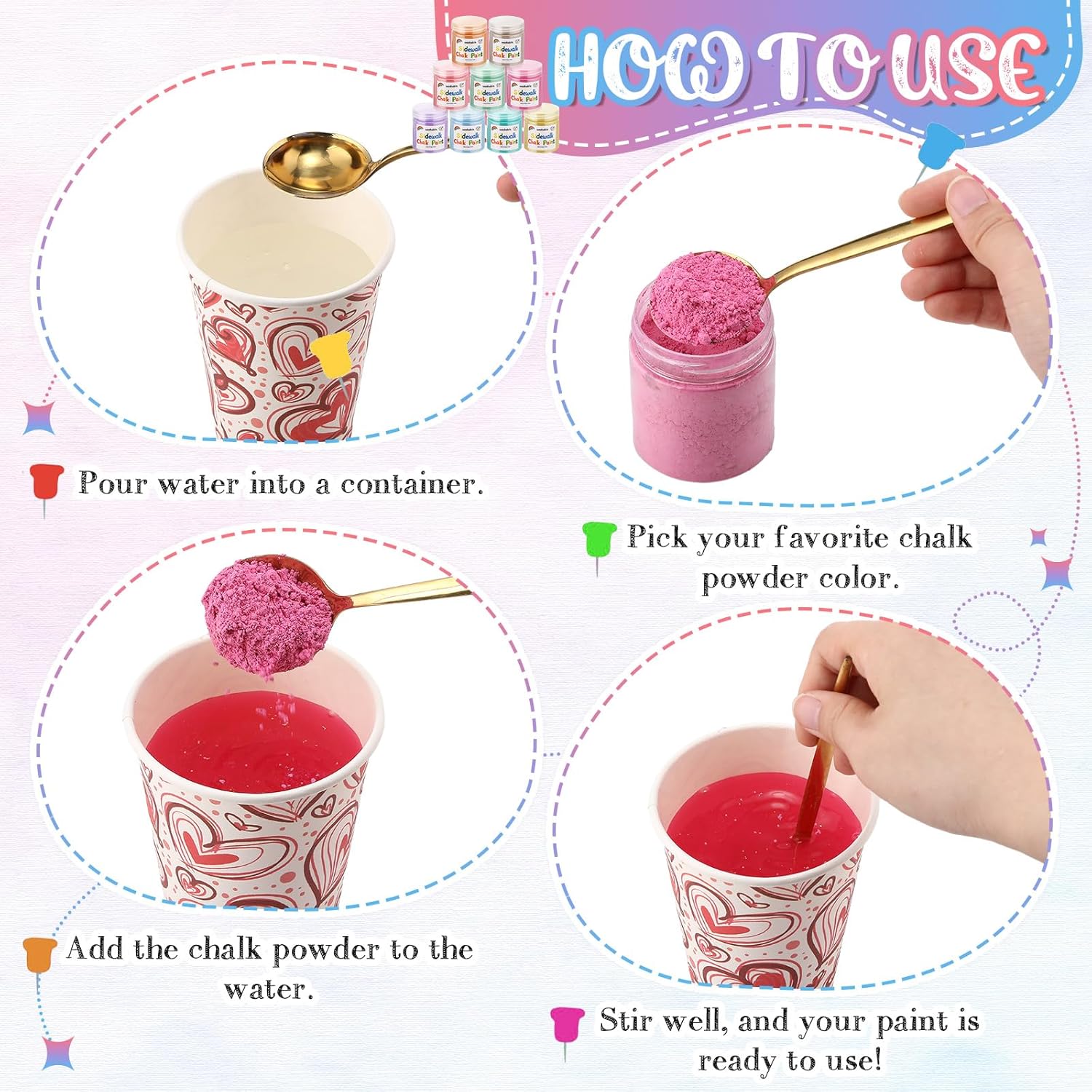 - Mixing Color: our sidewalk chalk come in powder form, enabling you to be creative and mix different colors together to create your favorite chalk paint color to add a personalized creation to your chalk paint creations, our non-toxic driveway chalk set is nice for backyard play, birthday parties and sunny weekends