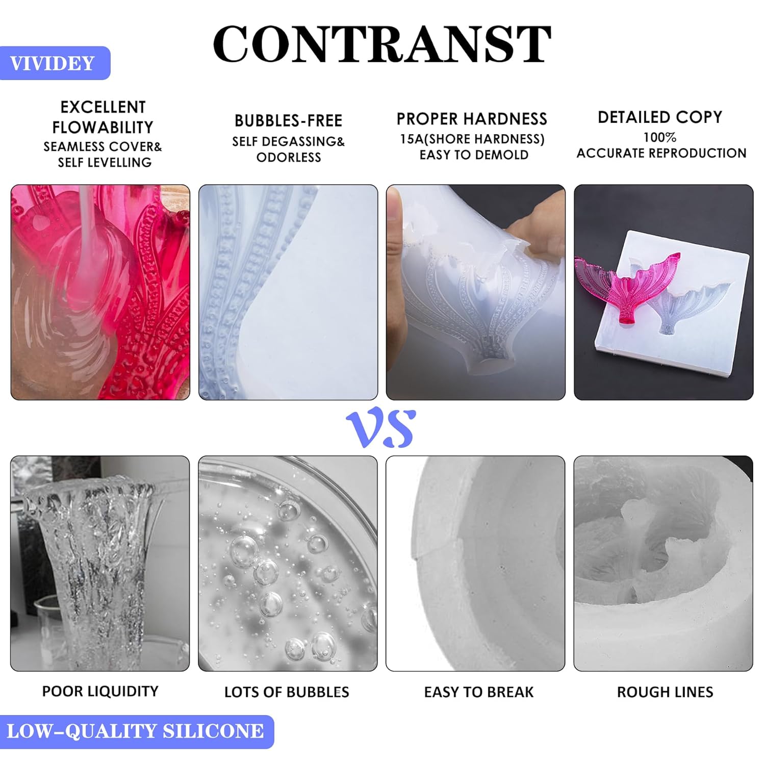 - Easy to mix & pour: Our liquid silicone rubber offers a practical 1:1 mixing ratio and self-degassing characteristics, making it effortless to obtain flexible and smooth silicone molds. Smooth like water, making it easily pour and capture every tiny detail of your objects! Make sure to thoroughly stir the mixture for 5 minutes for better results.