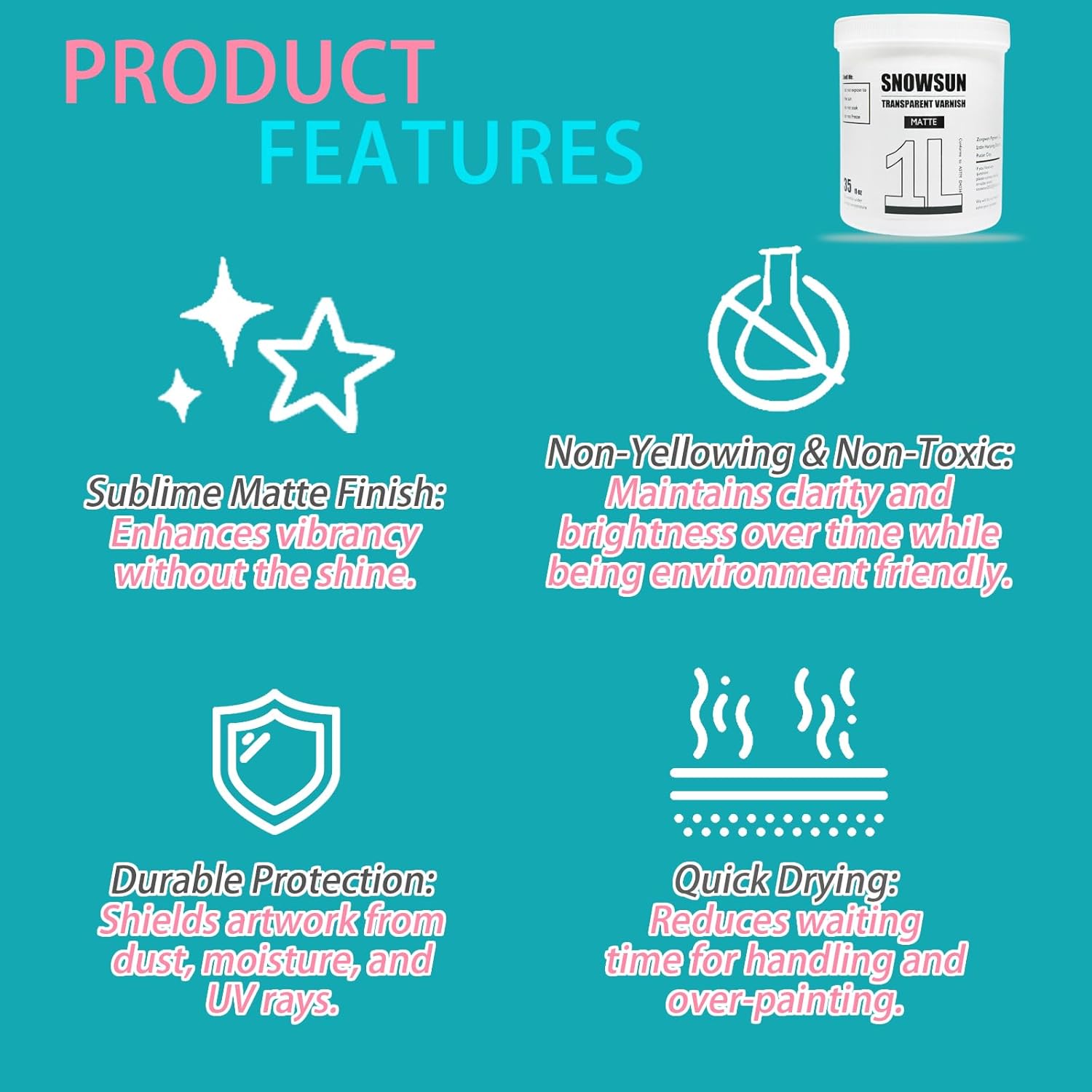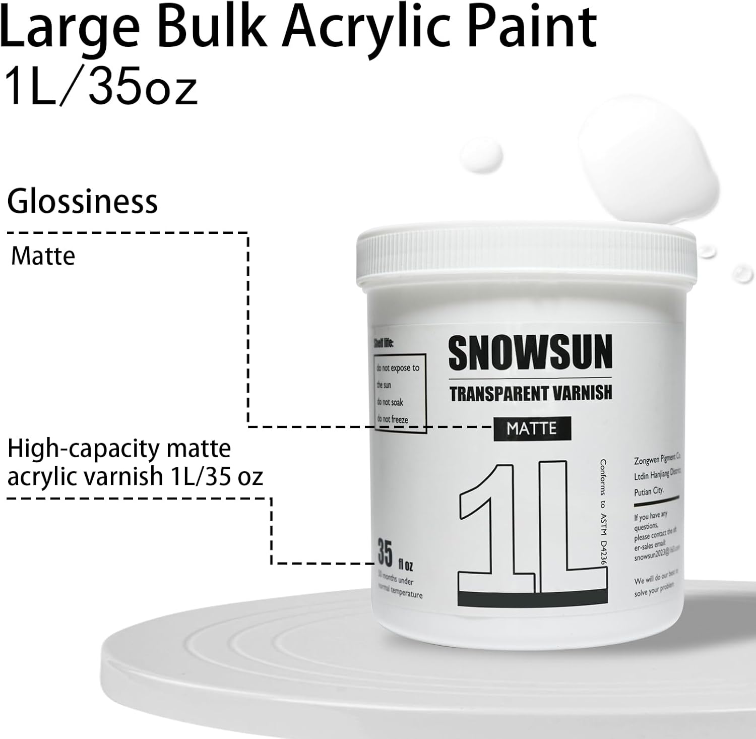 SNOWSUN Matte Varnish for Acrylic Painting, 1L Professional Acrylic Artist's Varnish, Matte Finish, Non-Yellowing, Non-Toxic, Suitable for Artists, Hobby Painters & Kids