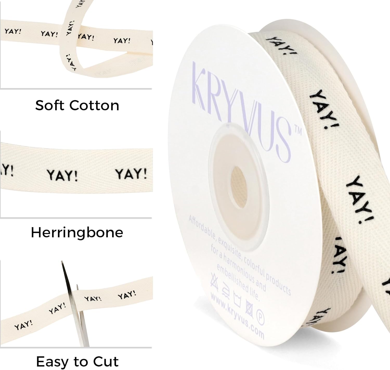 Yay! Ribbon - 5/8 Inch x 12 Yards Natural Twill Tape Ribbon, Cotton Herringbone Ribbons for Gift Wrapping, Birthdays, Weddings, Christmas, Anniversaries, Valentine's Day, Mother's Day