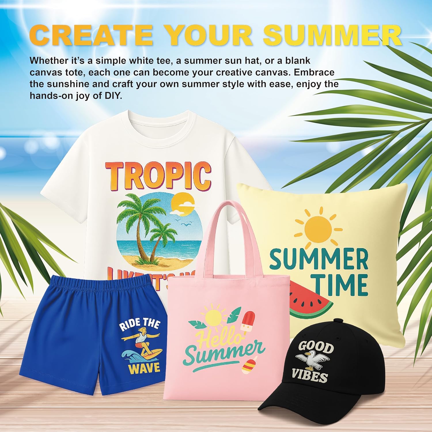 HTVJOYDO Iron-On Heat Transfer Paper for T-Shirts, 25 Sheets 8.5x11", Iron on Vinyl for Light Fabric, Printable Heat Transfer Vinyl for Inkjet Printer, Perfect for Summer Crafts