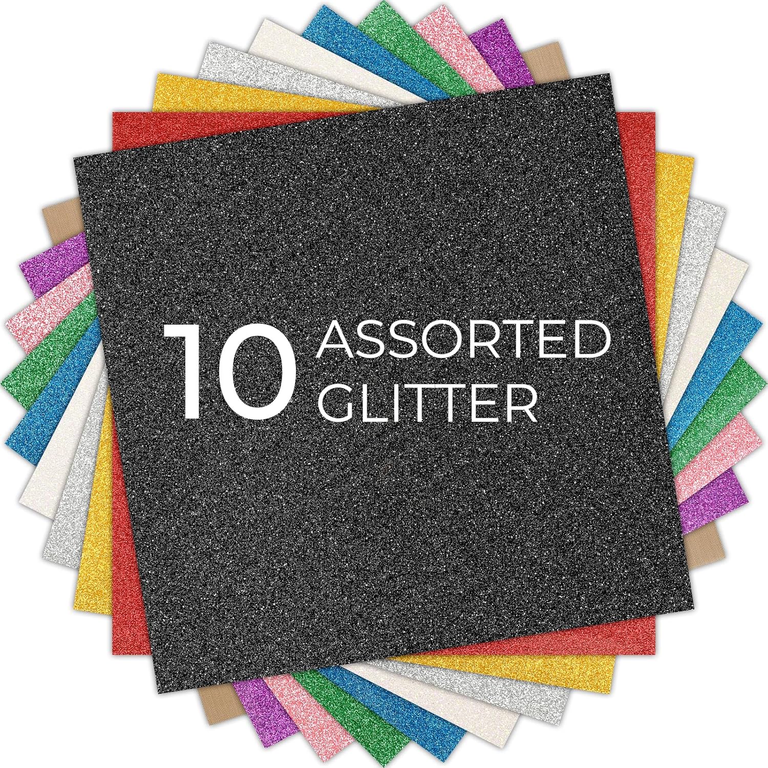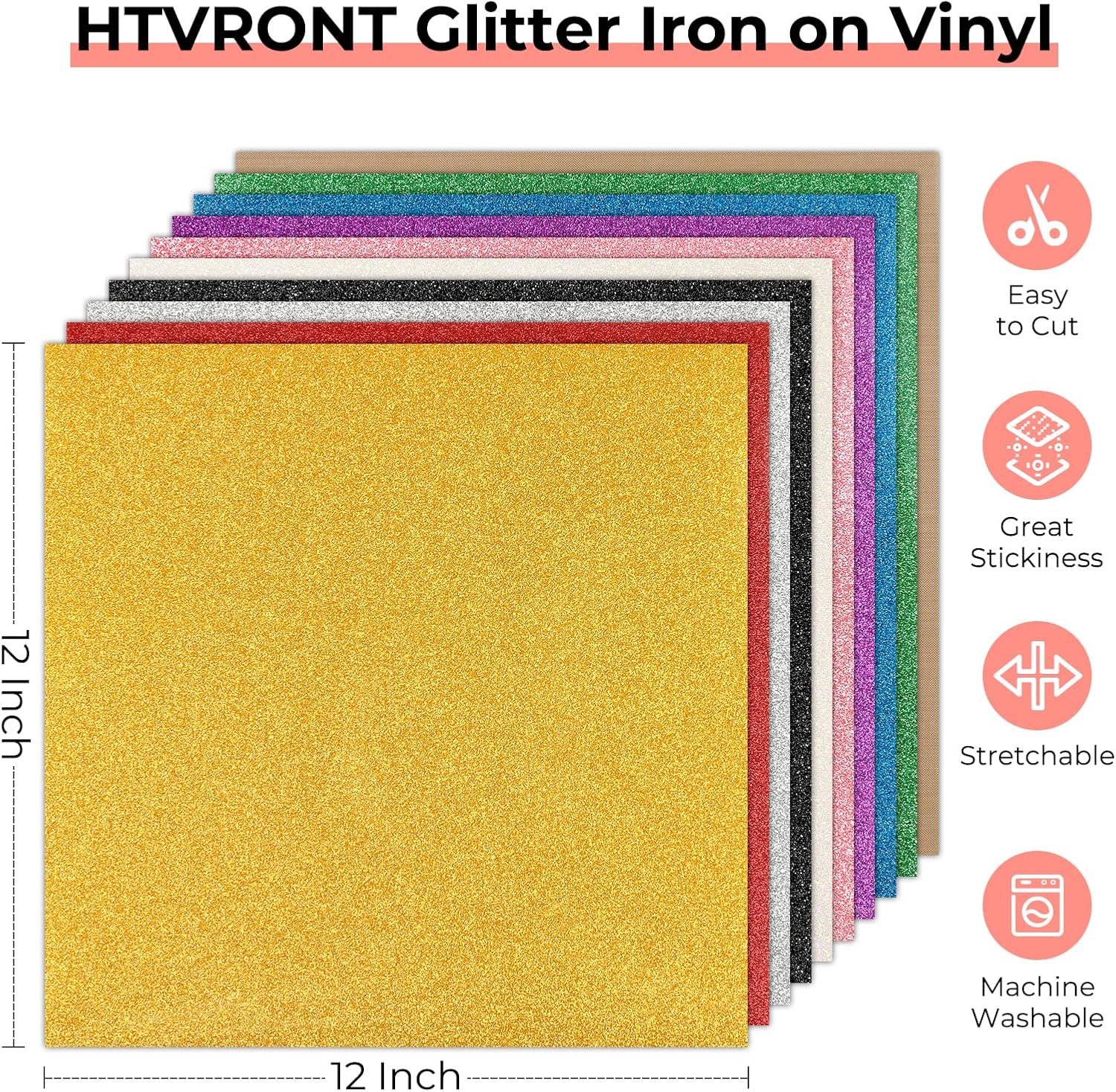 HTVRONT Glitter HTV Heat Transfer Vinyl Bundle: 10 Pack 12"x12" Iron on Vinyl for T-Shirt (1 PTFE Sheet Included), PU HTV Easy to Cut & Weed for Heat Design
