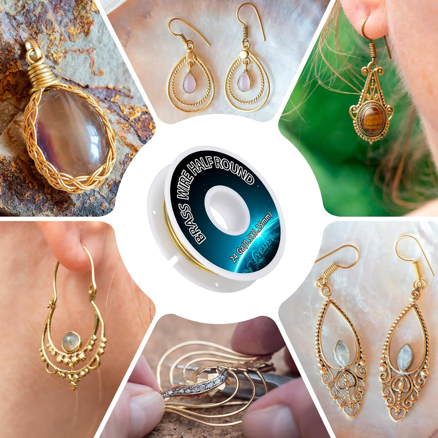 Ultra-Fine 24 Gauge Brass Wire Half Round 0.51x0.25mm - 1.3 oz 112 Feet for Detailed Jewelry, Clockmaking