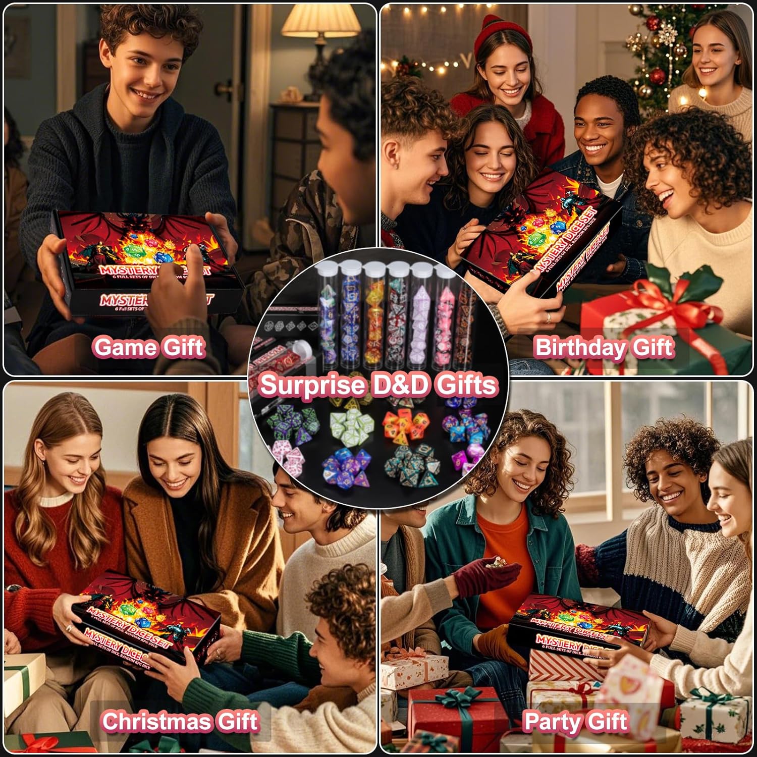 - Perfect Gift Idea: Give your friends a surprise! No one will know what surprises are hidden inside the box until open it. Our Mystery Dice Gift Box great for games and the accessory to any game room. Perfect as DND gifts or dungeon master gifts. Come surprise your adventure partner or yourself!