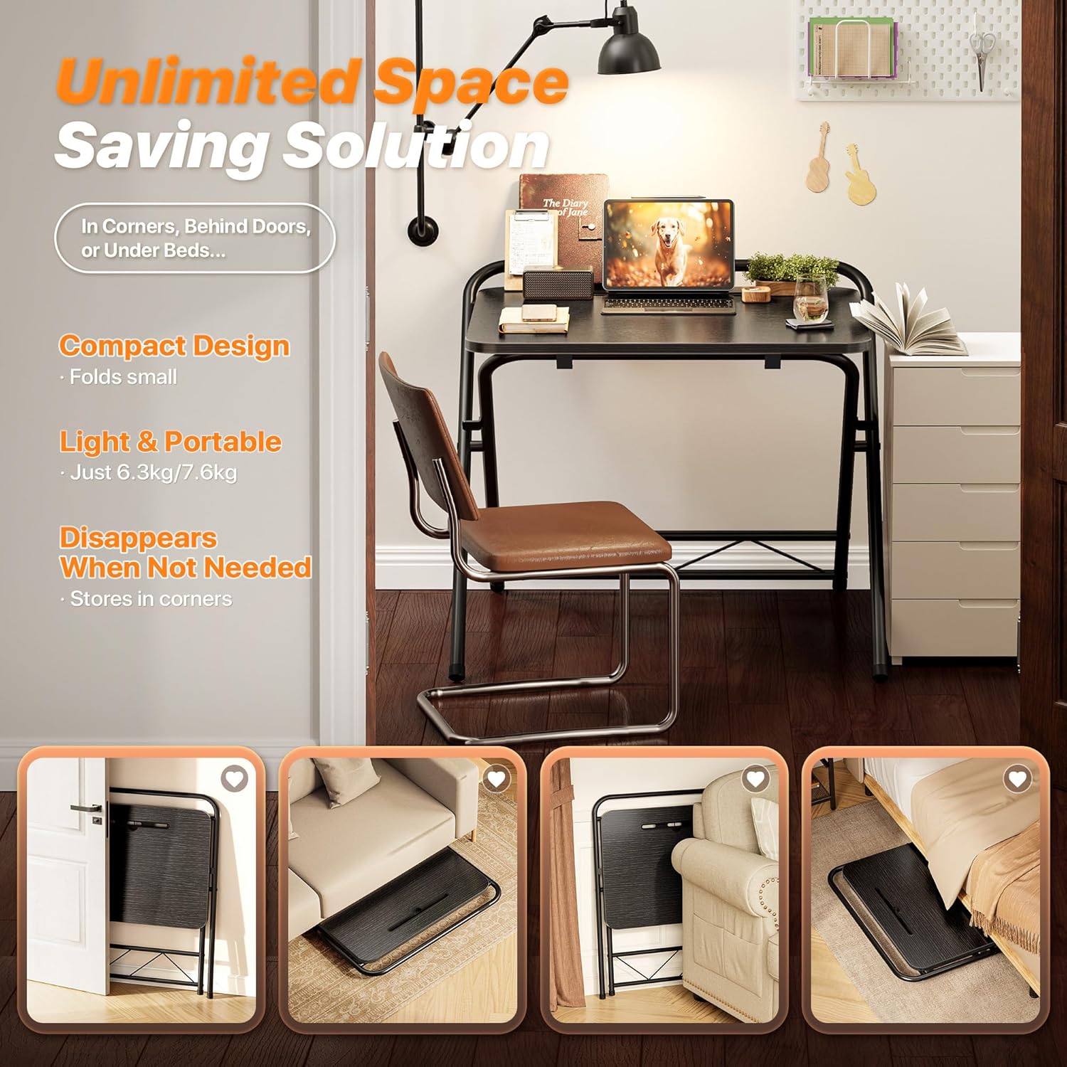 - ăCompact, Foldable & Space-SavingăPerfect for small spaces! Fold Size: 3.15'' X 26.6''X 36.6''. This lightweight foldable computer desk tucks neatly under beds, behind sofas, against walls, or in closets, small dorm. When you need more room, simply fold this office desk up and store it away. Ideal for maximizing your space