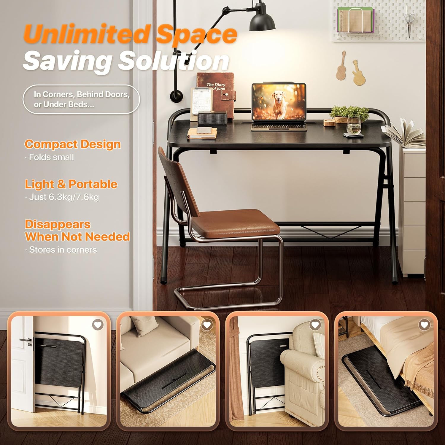 - ăCompact, Foldable & Space-SavingăPerfect for small spaces! Fold Size: 3.15'' X 34.5'' X 36.6''. This lightweight foldable computer desk tucks neatly under beds, behind sofas, against walls, or in closets, small dorm. When you need more room, simply fold this office desk up and store it away. Ideal for maximizing your space