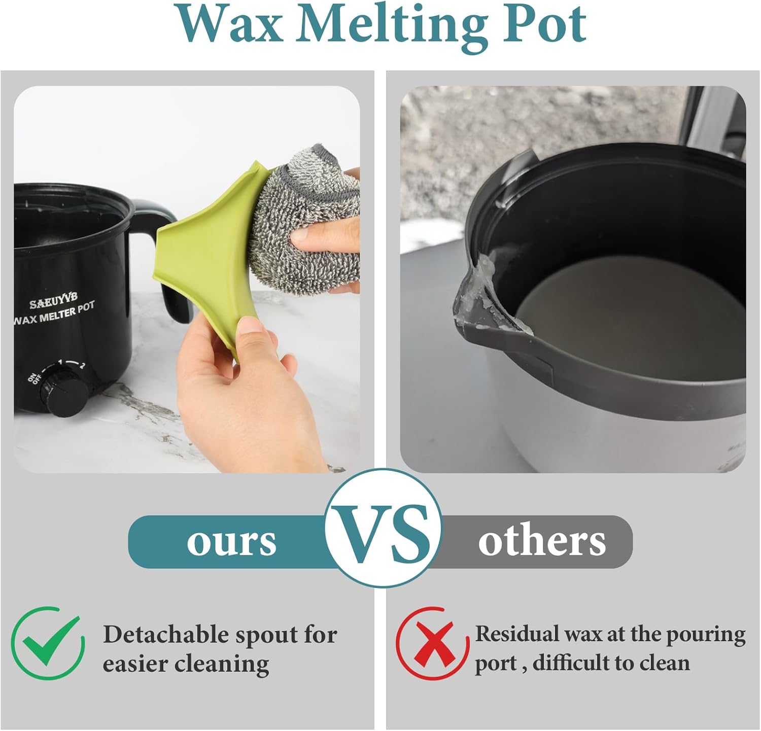 - 🎀【Easily Cleaning】:Our wax melting pot is designed with non stick properties inside,making it easy to clean with a hot wet towel or by boiling water directly,and leaving no residue after use.In addition,compared to the integrated spout, the detachable drainage spout can be more easily disassembled and cleaned as needed,experience the joy of DIY with family.