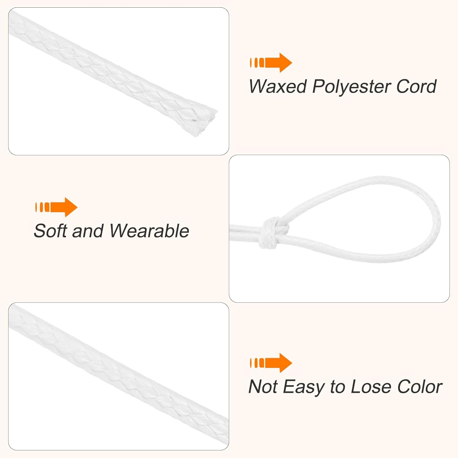 MECCANIXITY Waxed Cord 1mm Waxed Thread 87 Yard Wax String Leather Cord for Bracelet Making, Necklaces, Beading, Jewelry Making and DIY Crafts(White)