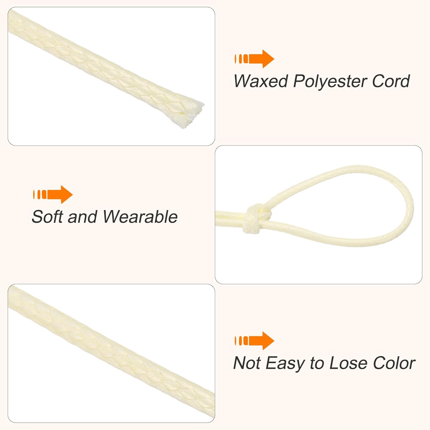 MECCANIXITY Waxed Cord 1mm Waxed Thread 87 Yard Wax String Leather Cord for Bracelet Making, Necklaces, Beading, Jewelry Making and DIY Crafts(Beige)
