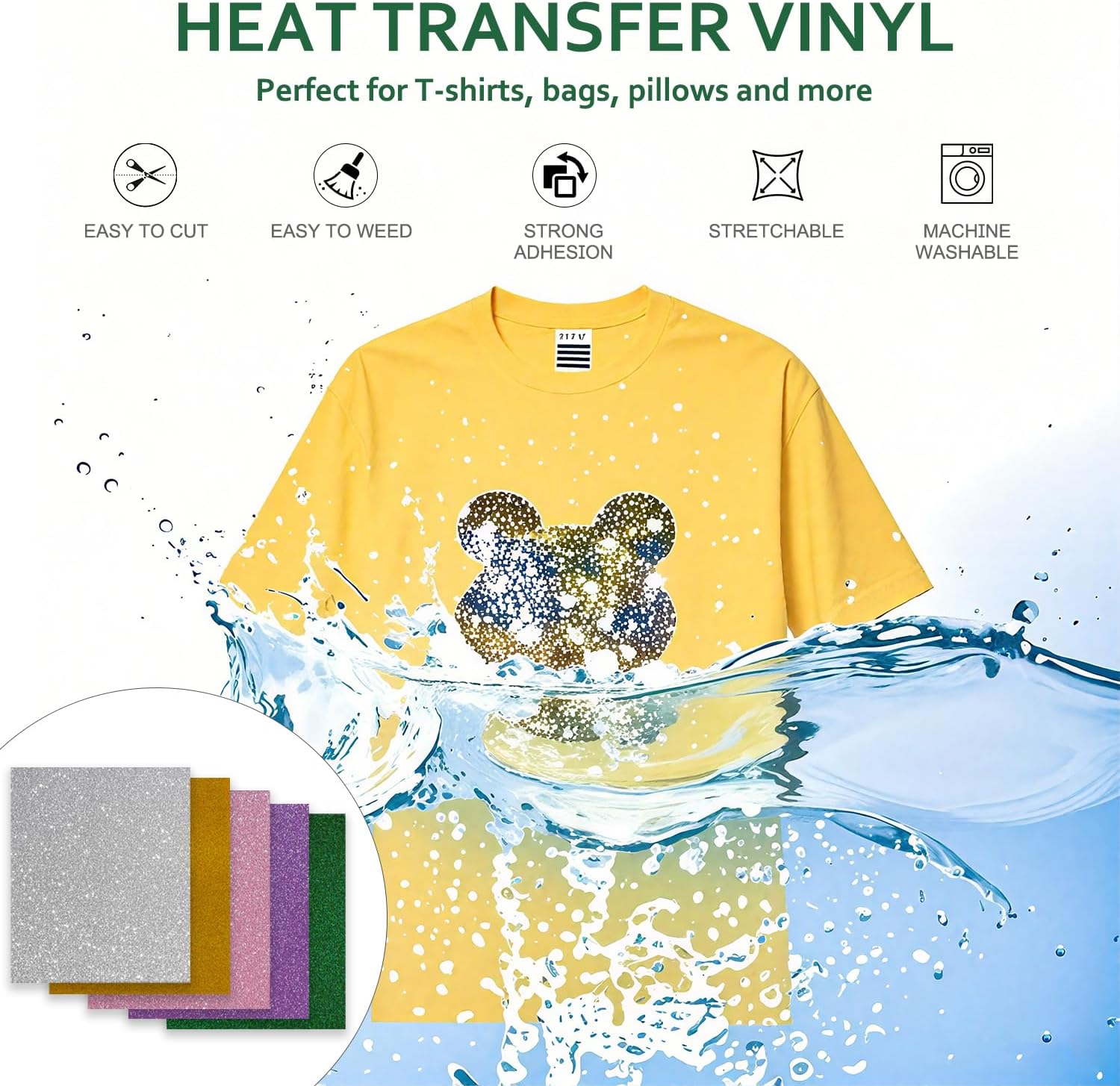 - Premium&Long-Lasting Vinyl: The Glitter Heat Transfer Vinyl has a fine and even texture, ensuring intricate and vibrant designs that last, even after multiple washes. It's perfect for creating on clothing and other items. The Adhesive Vinyl offers up to 3 years of outdoor durability, withstanding sun and rain while maintaining vibrant, fade-resistant colors, making it ideal for outdoor and home decor. All of these vinyls are easy to cut, weed, and transfer, ensuring long-lasting beautiful results, whether for complex designs or everyday use.