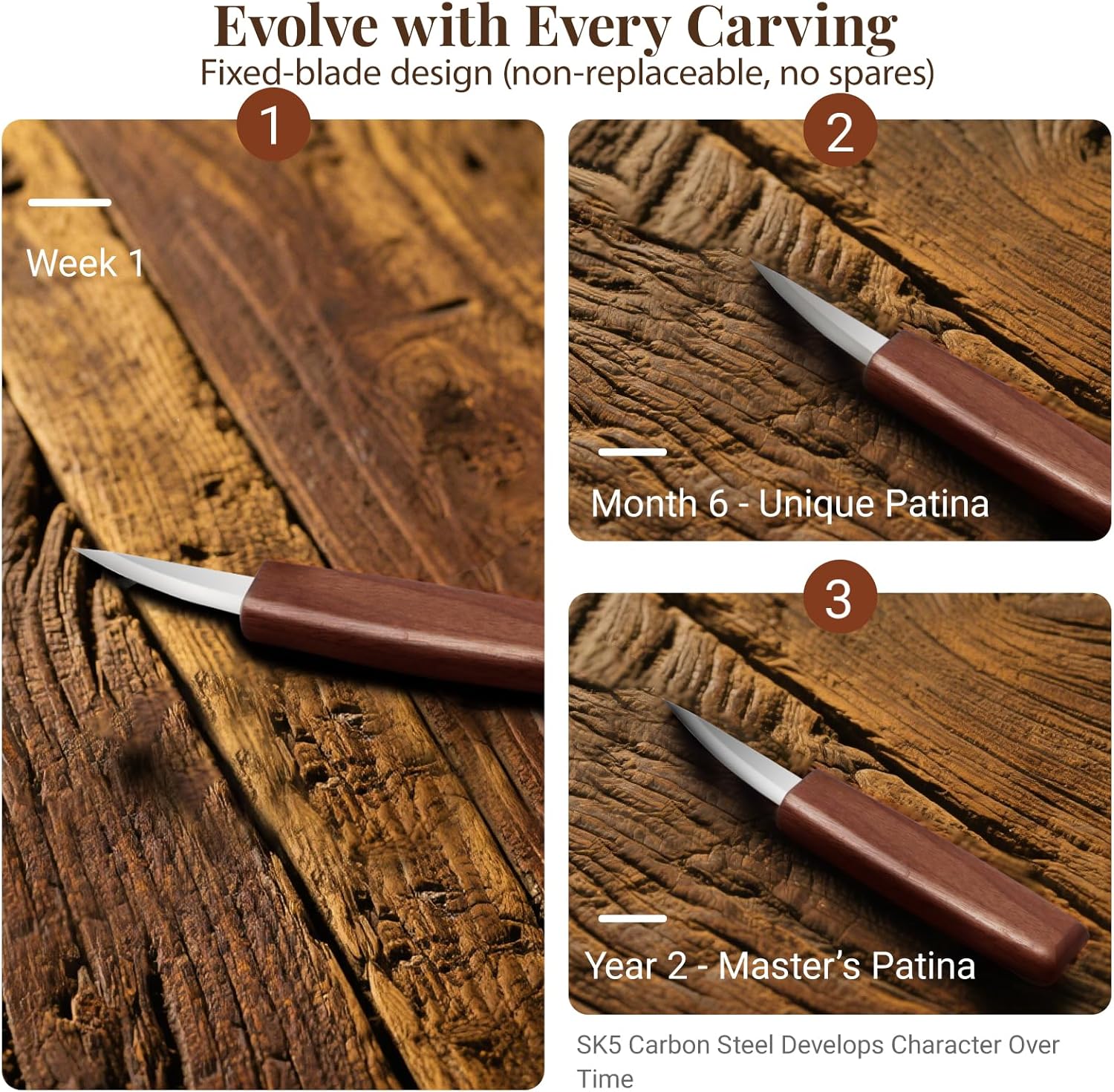 - Multi-Generational Crafting Experience: From first-time carvers to woodworking veterans: Our knives maintain edge retention through basswood, balsa, and soft maple. Dual-bevel edges allow detailed chip carving and rough shaping. 100% rust-resistant with proper care.