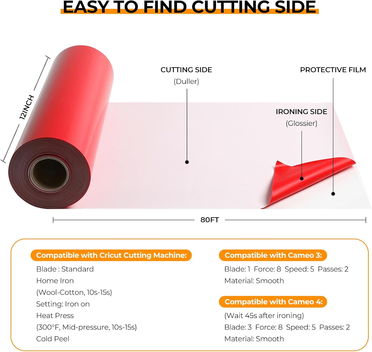 - 【Massive 80ft HTV for Maximum Value】Get significantly more material at the lowest cost per foot, saving you up to 50%+ vs. smaller packs while delivering the same premium quality, easy-to-use red heat transfer vinyl that compatible with Cricut & Silhouette cutting machine. Enjoy big project savings & less frequent reordering