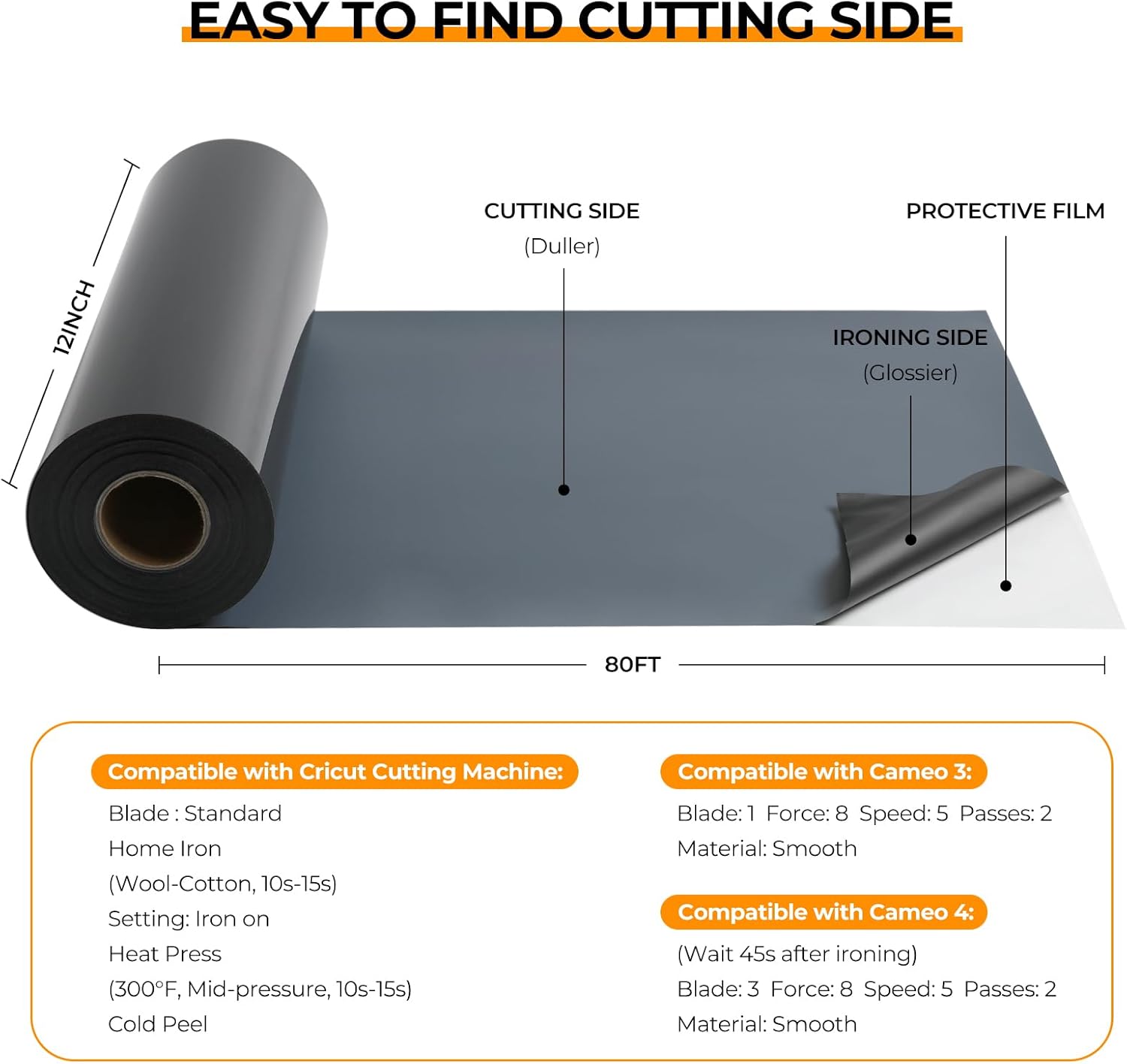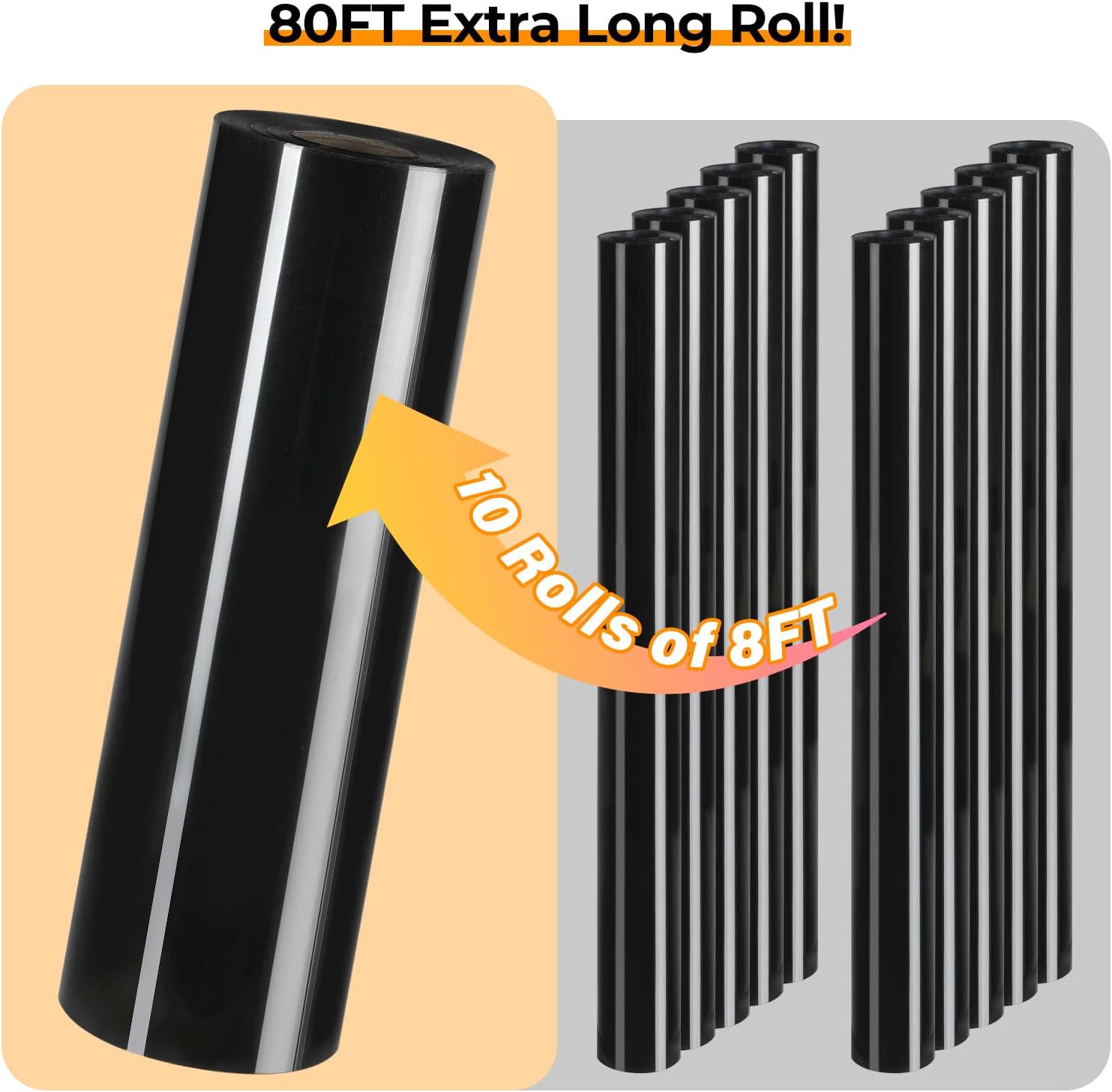 - 【Massive 80ft HTV for Maximum Value】Get significantly more material at the lowest cost per foot, saving you up to 50%+ vs. smaller packs while delivering the same premium quality, easy-to-use black heat transfer vinyl that compatible with Cricut & Silhouette cutting machine. Enjoy big project savings & less frequent reordering