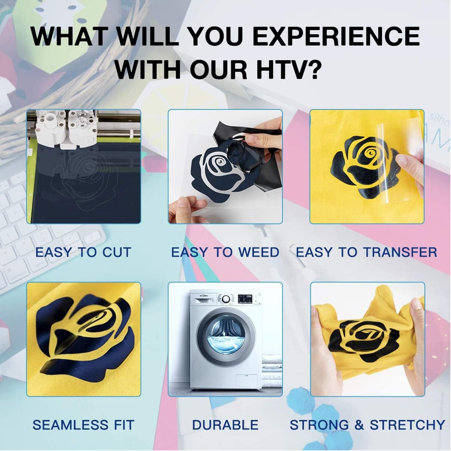 - 【Easy to Cut & Weed & Transfer】HTVRONT premium quality black htv vinyl will save time which you may waste on each image or letter, because you can cut and weed easily through the designs just right. Iron on vinyl is sensitive to temperature and pressure, which can be heat transferred to any t-shirt easily. Before cutting, make sure the blade is clean and sharp, so that your design can be cut well and weeding can be done better