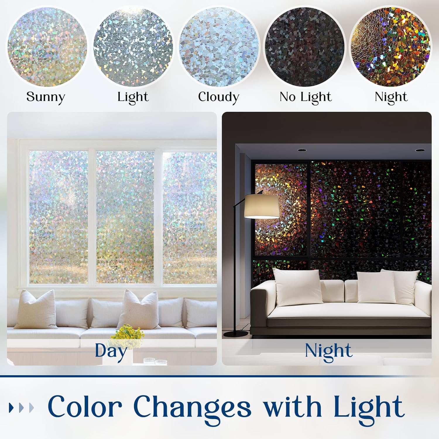 - Stunning Rainbow Effect: Featuring advanced 3D laser etching, this window film creates a vivid rainbow pattern under sunlight, adding playful color to your space—no need for traditional stained glass. Note: The film itself is colorless