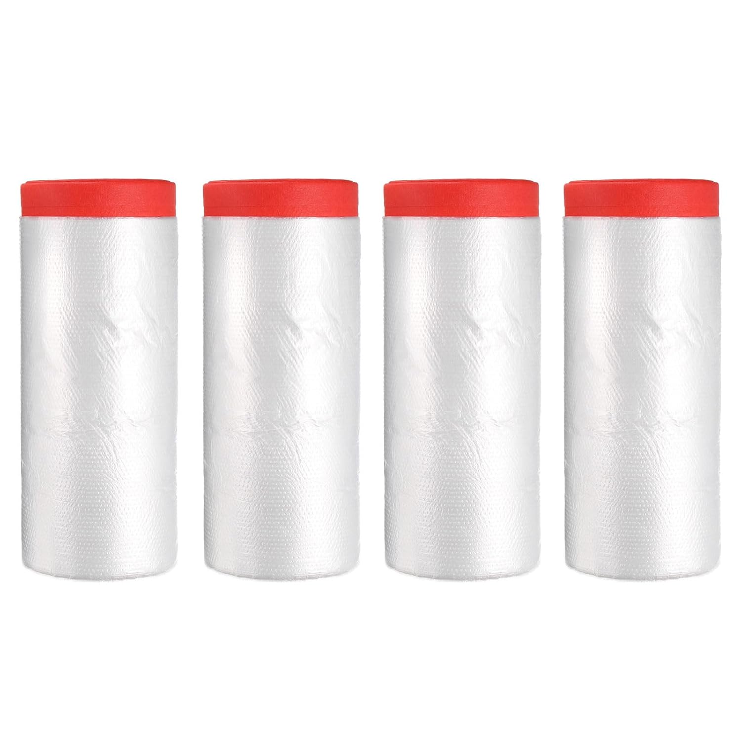 uxcell Pre-Taped Masking Film, 3.6ft x 66ft High-Tack Painters Tape Plastic Drop Cloth with High-Tack Painters Tape for Painting Protection Red 4Pcs