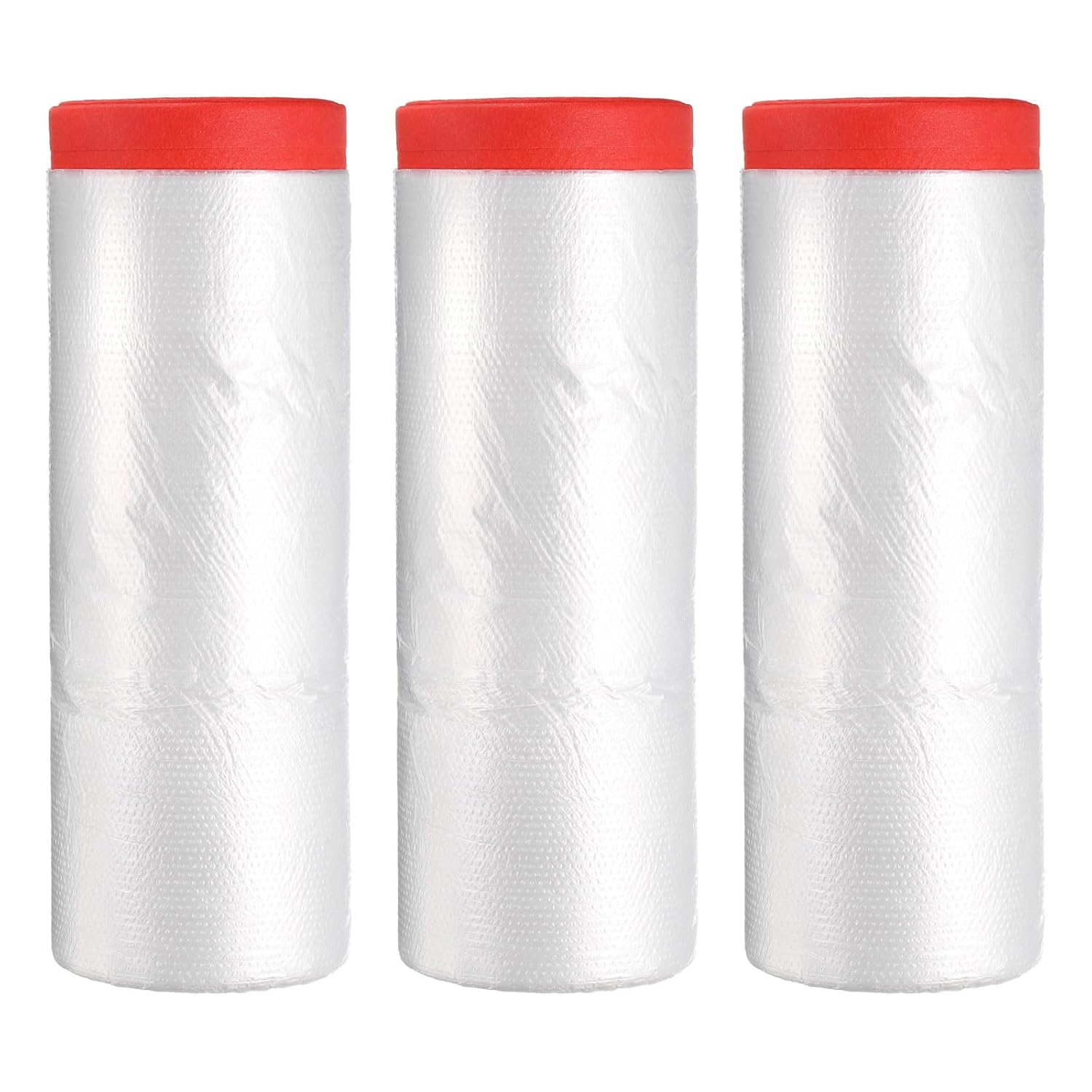 uxcell Pre-Taped Masking Film, 7.9ft x 66ft High-Tack Painters Tape Plastic Drop Cloth with High-Tack Painters Tape for Painting Protection Red 3Pcs