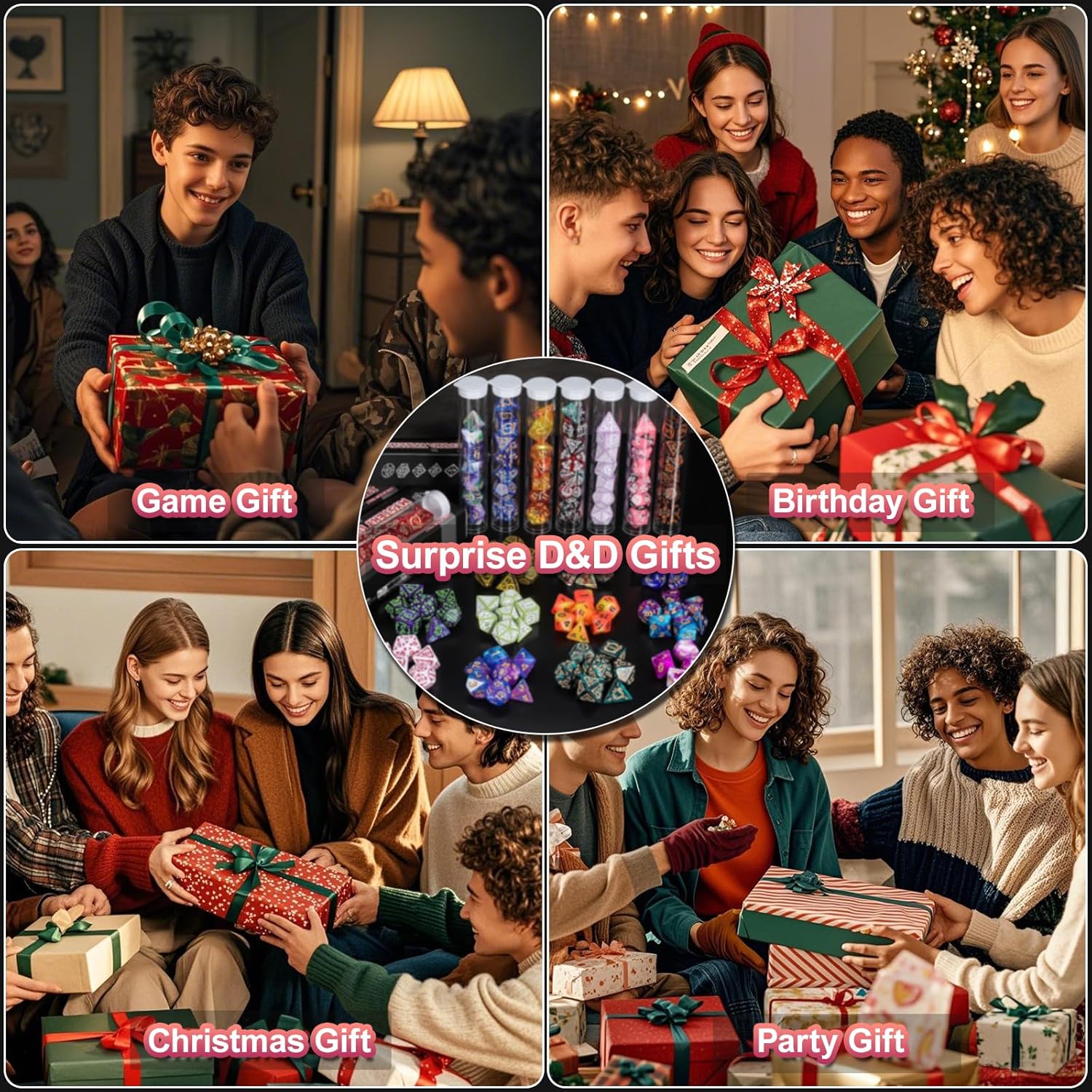 - Perfect Gift Idea: Give your friends a surprise! No one will know what surprises are hidden inside the box until open it. Our Mystery Dice Gift Box great for games and the accessory to any game room. Perfect as DND gifts or dungeon master gifts. Come surprise your adventure partner or yourself!