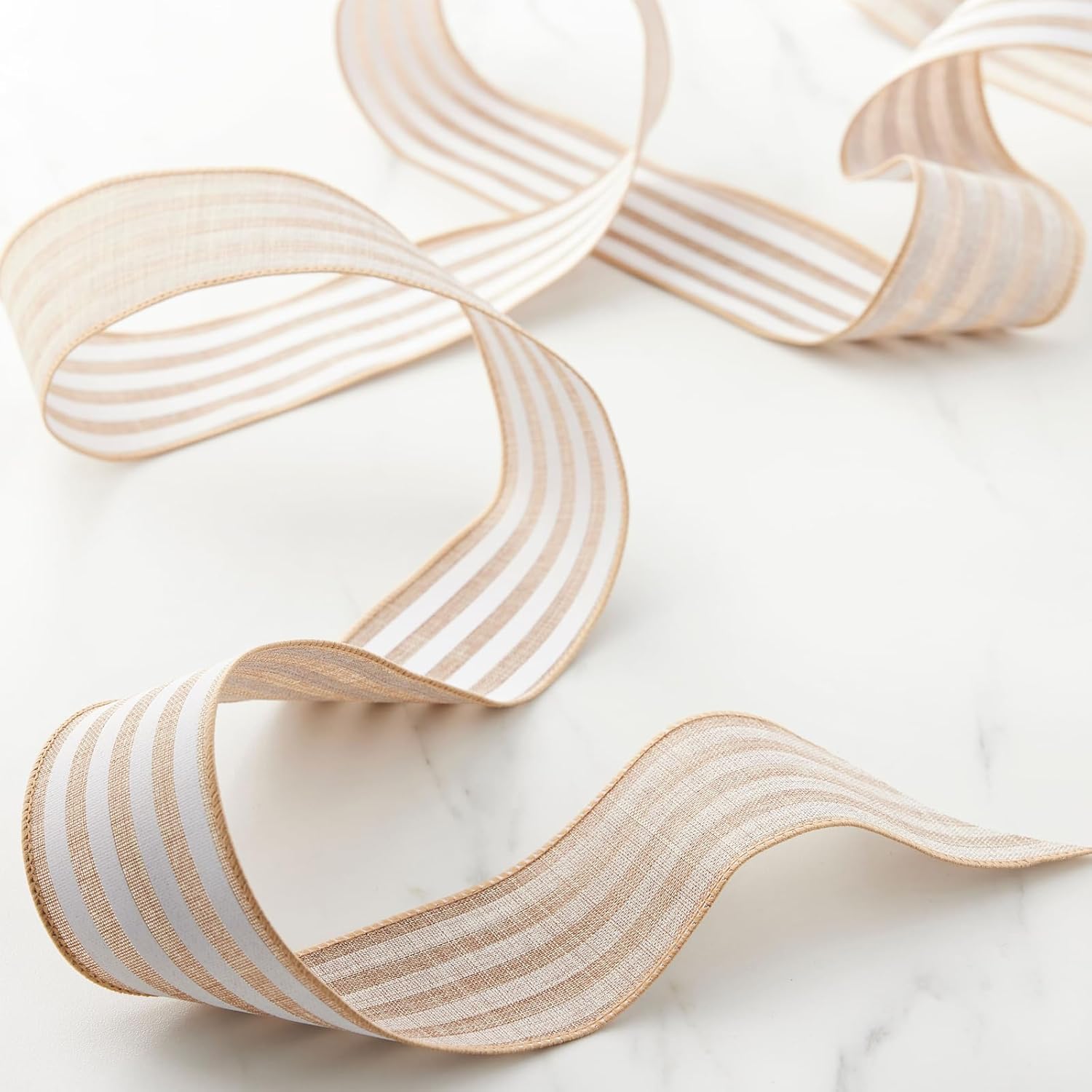 Burlap Ribbon Wired, Farmhouse Rustic White Stripe Ribbon for Gifts Wrapping DIY Crafts Floral Bows Wreath Making Party Supplies Holiday Home Decoration, 2.5 Inch x 10 Yards