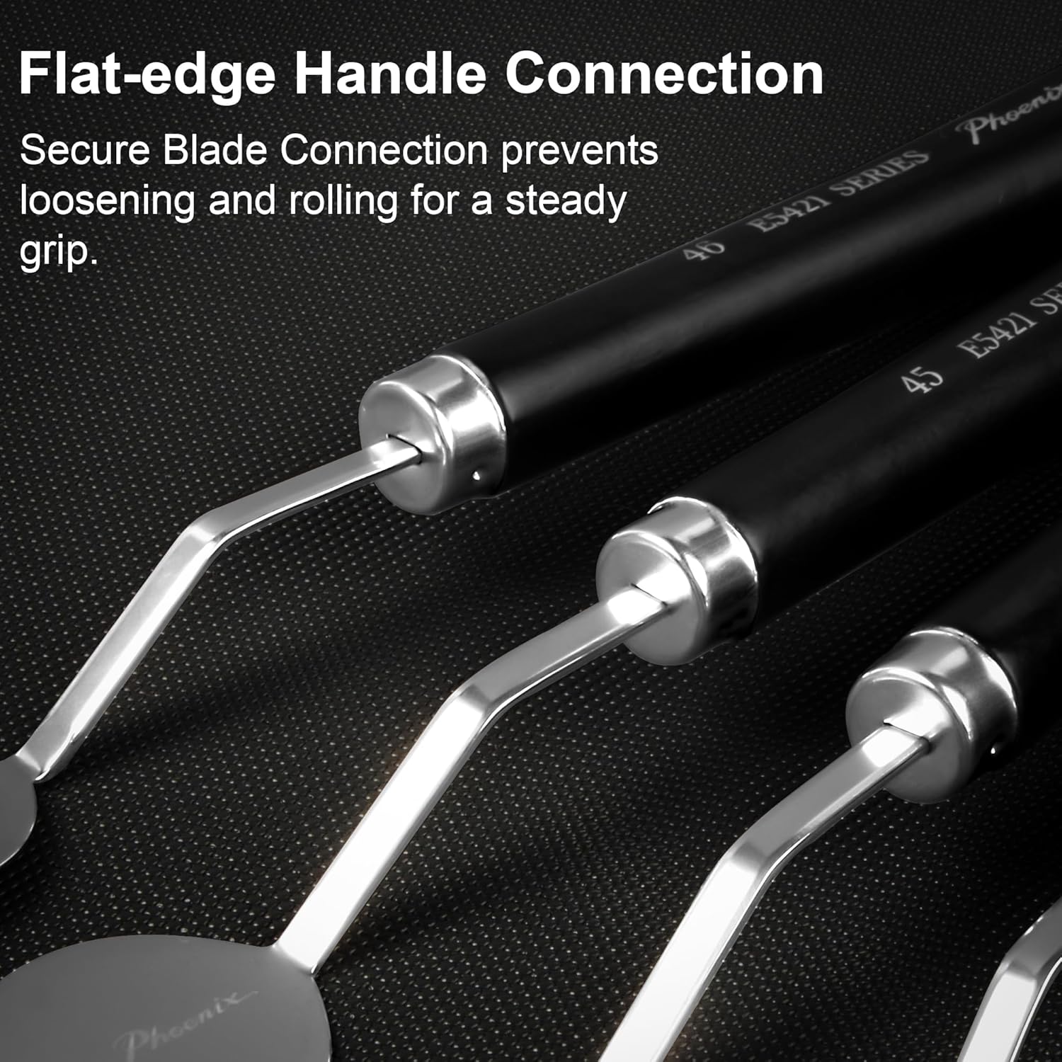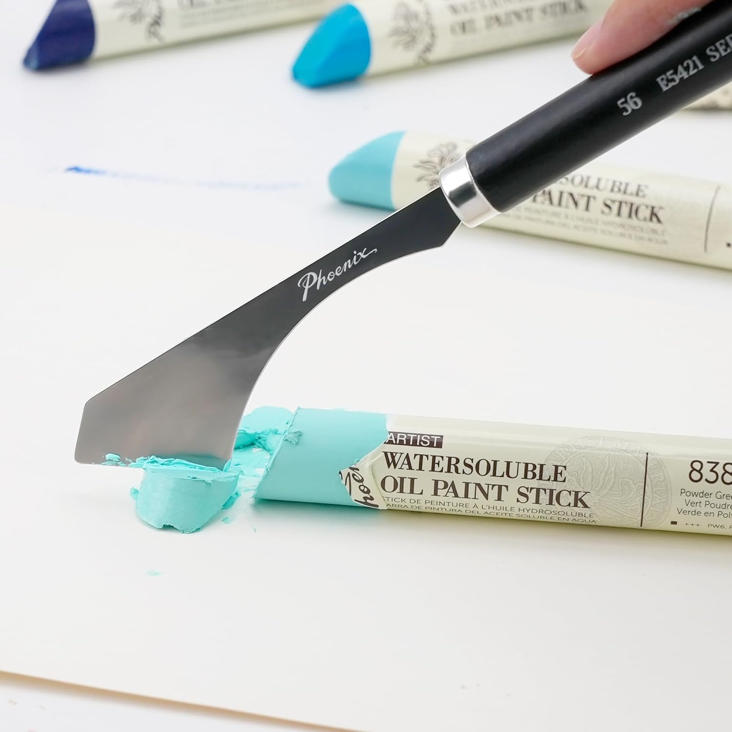 - PREMIUM STAINLESS STEEL BLADES - PHOENIX high-quality knives have been crafted with premium stainless blades that resist wear and corrosion from any media, including acrylics. Perfect for oil, acrylic, and oil pastels, these painting knives retain their sharpness over time, ensuring precise and even strokes on your canvas.