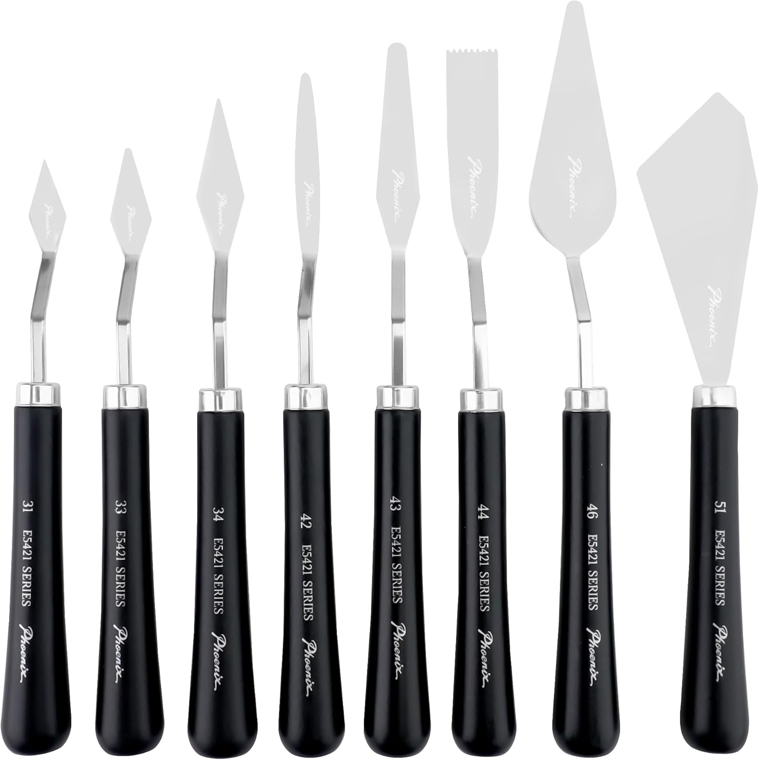 PHOENIX High Flexible Palette Knife Set, 8 Pieces Stainless Steel Painting Knives (31,33,34,42,43,44,46,51) Art Knife with Wood Handle, Paint Spatula for Oil Acrylic Paint