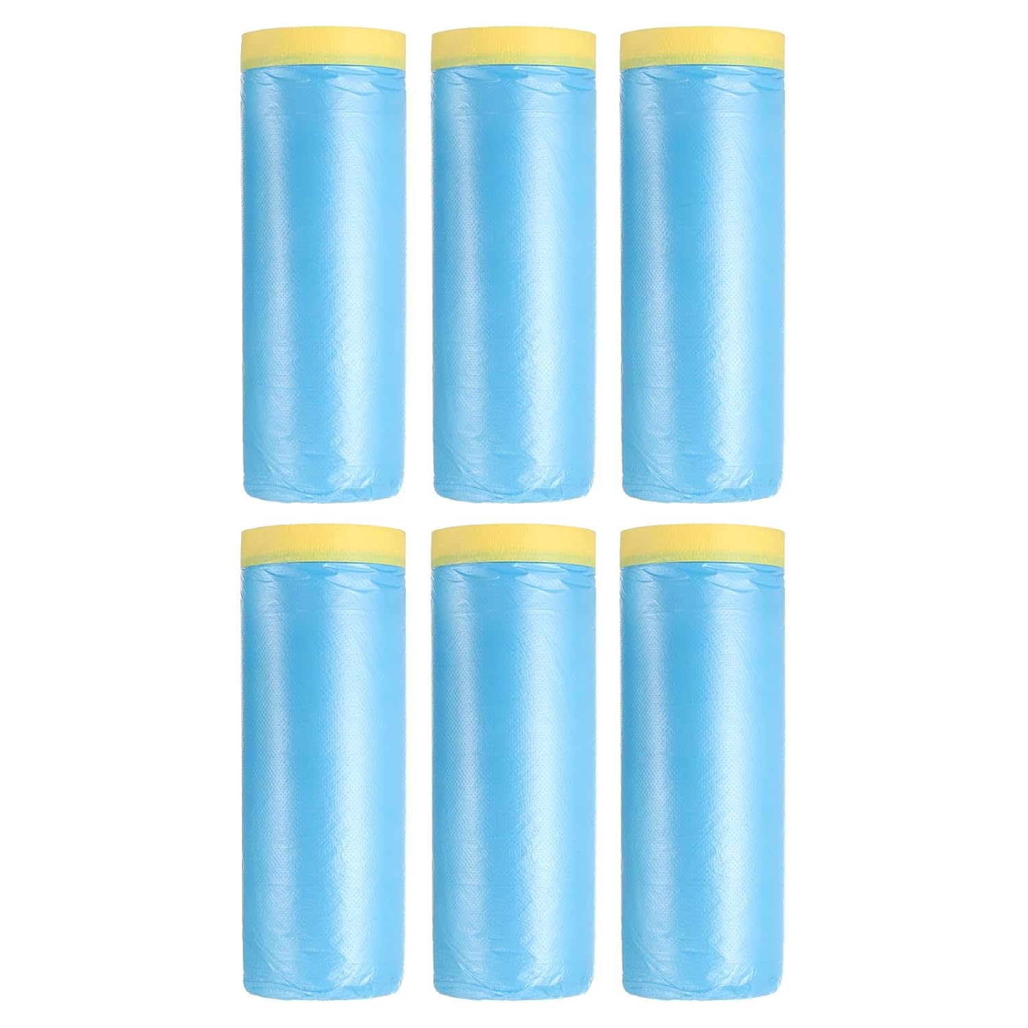 uxcell Pre-Taped Masking Film, 3.6ft x 66ft Plastic Paint Drop Cloth with Medium-Tack Painters Tape for Painting Spraying Protection Blue Film 6Pcs