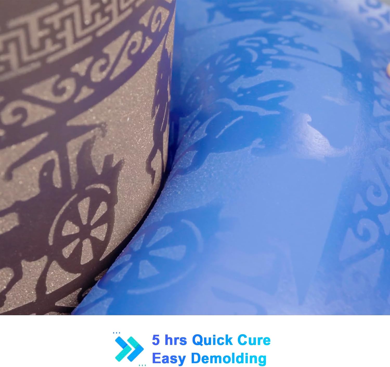 - 【 30 mins Working Time & 3~5 hrs Quick Cure】When using this silicone for mold making at a room temperature, you will have at least 30 minutes working time, to ensure everything can be set in a relaxed way, and after set, the silicone molds will be cured/hardened in about 3~5 hours (@73F). If you are experienced silicone molds maker, you can definitely heat the silicone up to shorten the cure time, but vacuum chamber / pressure pot will be needed if heating up to cure.