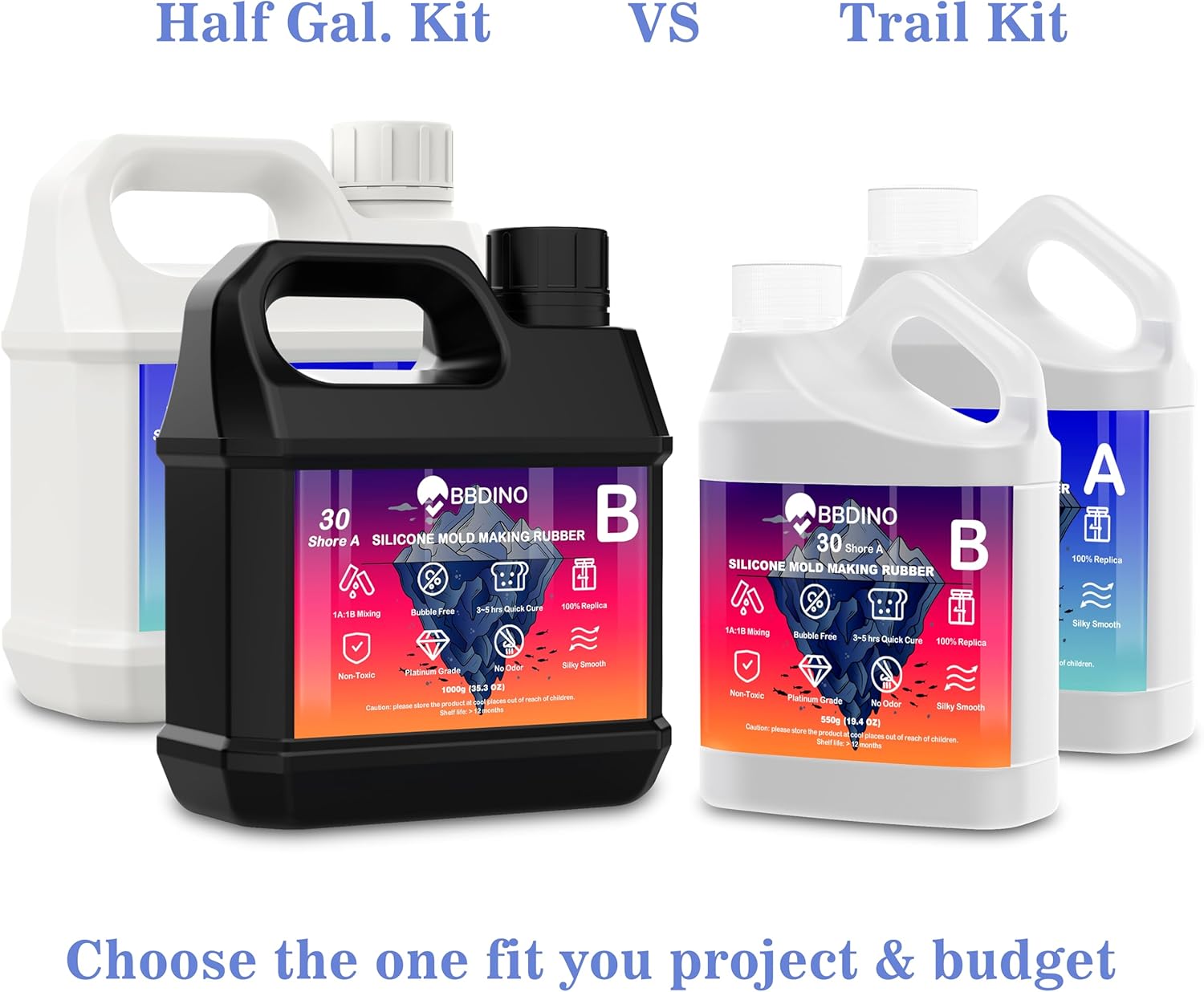BBDINO Silicone Mold Making Kit, Liquid Silicone for Molds Making 30A Clear, High Strength Silicon Rubber 38.8 Oz, 1:1 by Volume Ideal for Mold Casting of Resin/Jewelry/Candle/Concrete/Plaster