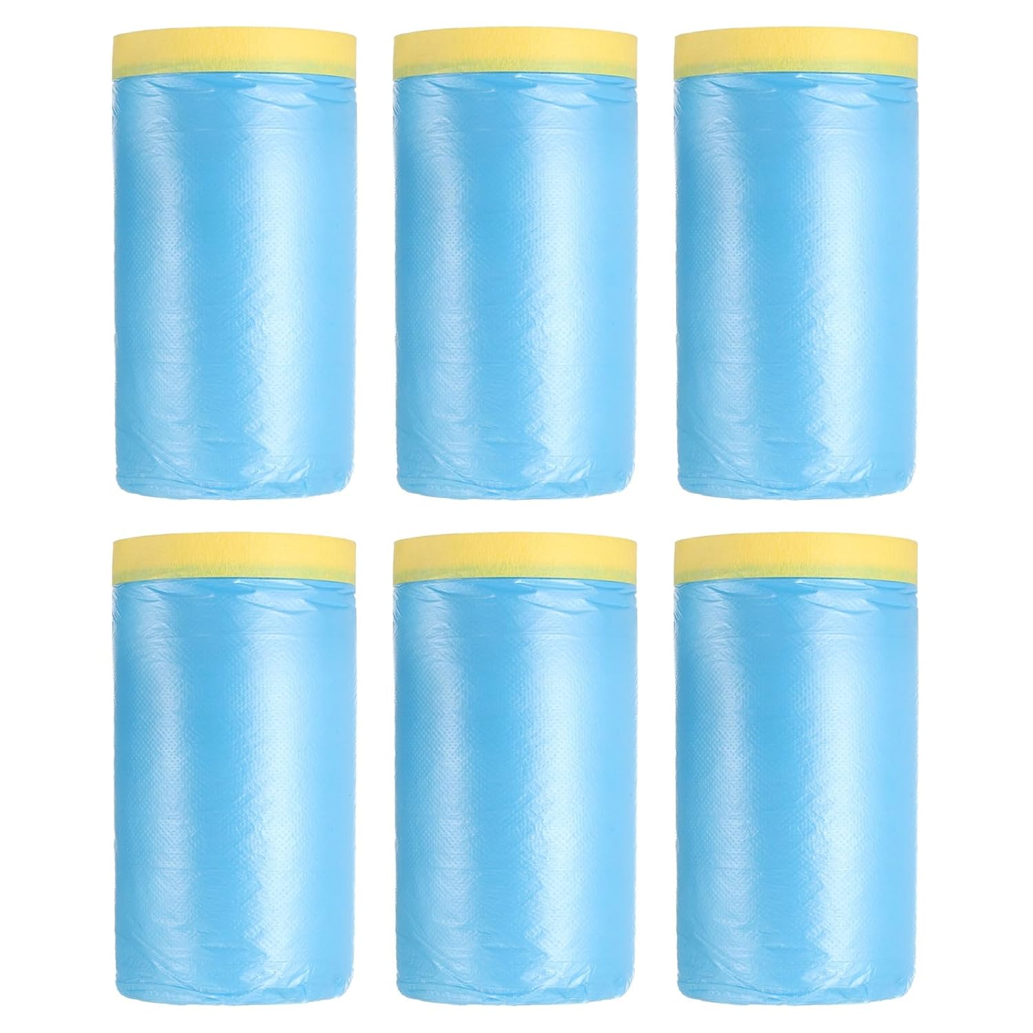 uxcell Pre-Taped Masking Film, 3.6ft x 82ft Plastic Paint Drop Cloth with Medium-Tack Painters Tape for Painting Spraying Protection Blue Film 6Pcs