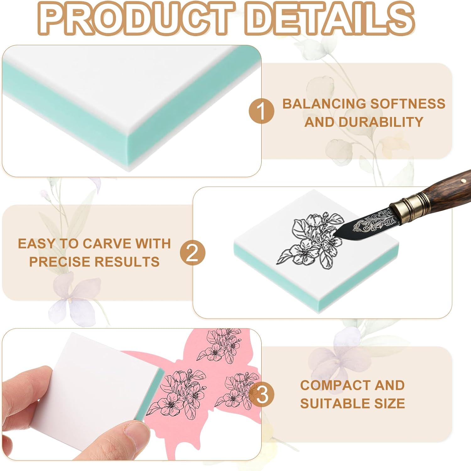 - Advantage: Rubber stamp block is soft yet durable, balancing softness and durability, easy to carve with precise results, suitable for complex designs and clear stamps. The material is flexible and resistant to cracks, ensuring the stamp is durable and reusable.