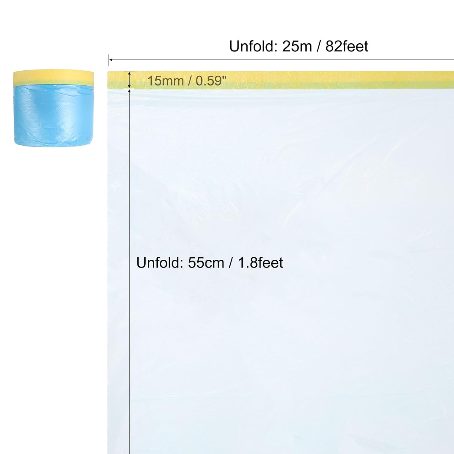 uxcell Pre-Taped Masking Film, 1.8ft x 82ft Plastic Paint Drop Cloth with Medium-Tack Painters Tape for Painting Spraying Protection Blue Film 3Pcs
