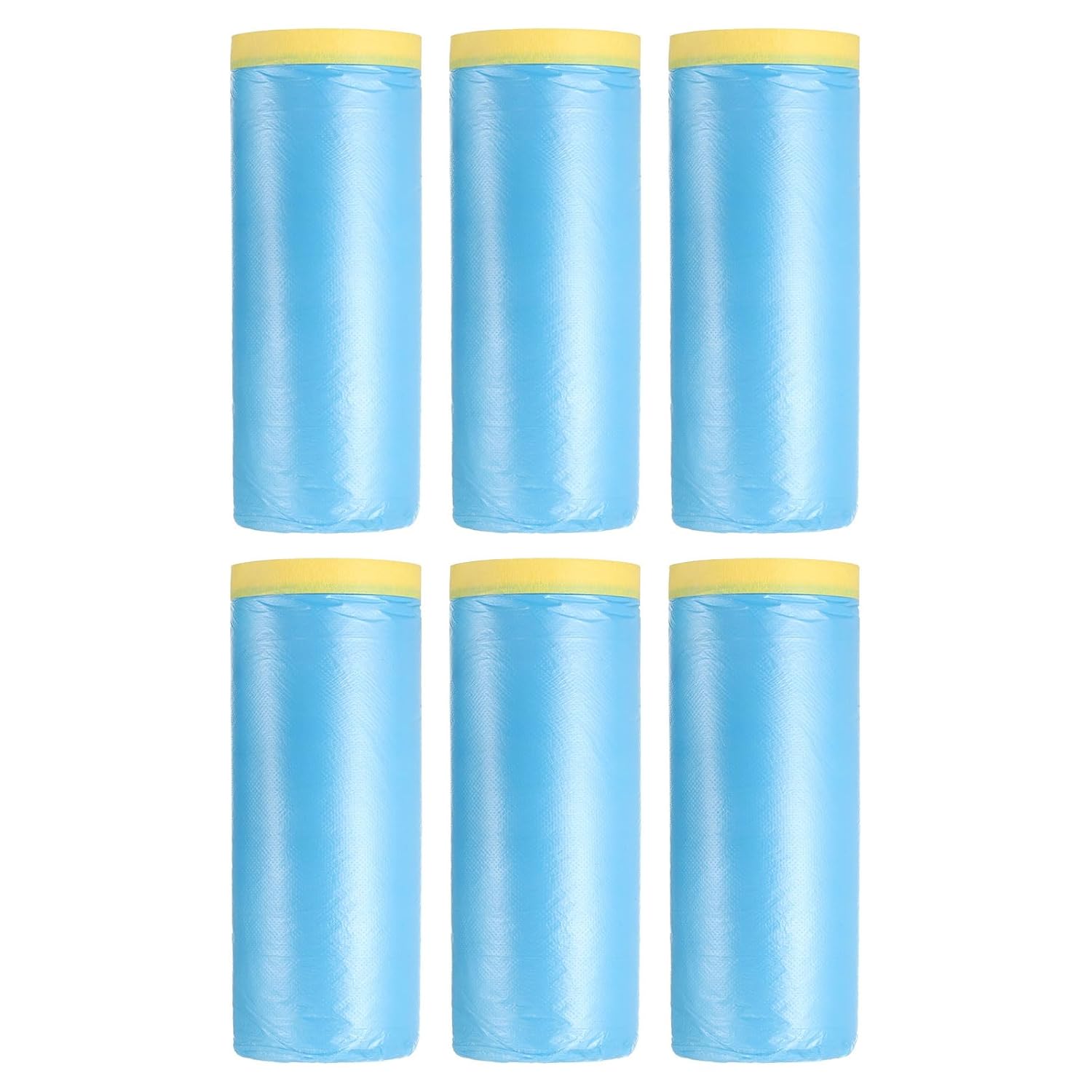 uxcell Pre-Taped Masking Film, 4.9ft x 82ft Plastic Paint Drop Cloth with Medium-Tack Painters Tape for Painting Spraying Protection Blue Film 6Pcs