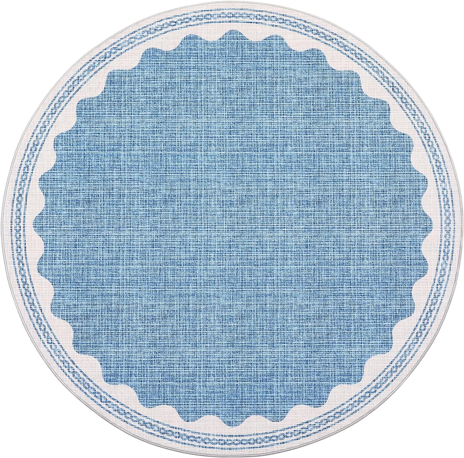 - 【Timeless Unique Scalloped Design】It is a gorgeous washable and foldable round rug featuring a minimal neutral cream tone with a scalloped edge design. A timeless, modern, and unique design to add to any space.Due to the nature of printing, the round blue rugs design may vary slightly from the product photos, making each scalloped rug unique.