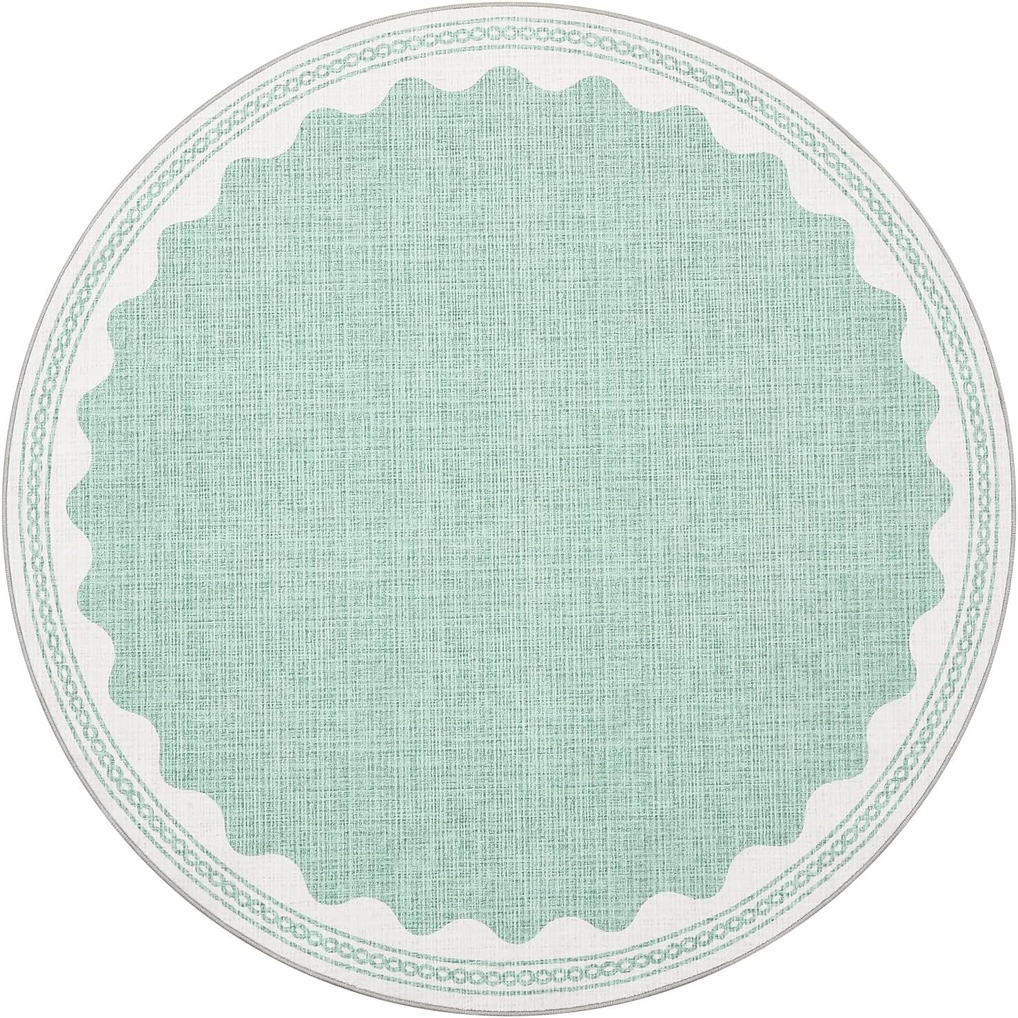 - 【Timeless Unique Scalloped Design】It is a gorgeous washable and foldable round rug featuring a minimal neutral cream tone with a scalloped edge design. A timeless, modern, and unique design to add to any space.Due to the nature of printing, the round green rugs design may vary slightly from the product photos, making each scalloped rug unique.